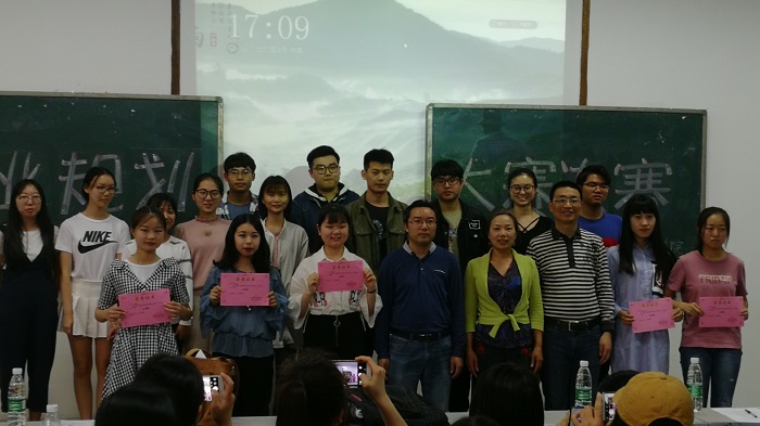 在经过评委的评分后,王晶荣获本次大赛一等奖,颜佳睿获得二等奖,三名三等奖获得者分别是李鹃,宋晨晨,钟雪。最后, 刘书记对大赛作了总结,通过讲述上一届职业规划大赛校一等奖的案例,阐述了职业规划角度新颖的重要性,还从多个角度对同学们的职业生涯规划方面提出了宝贵的建议。