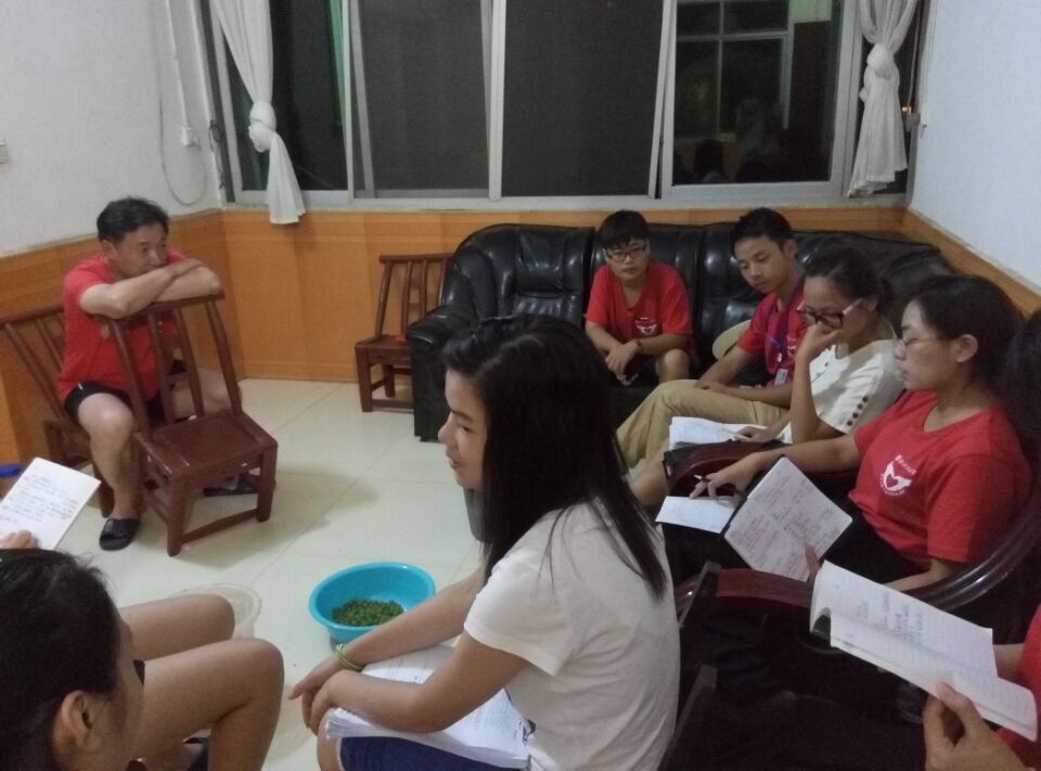 晚上21:00,王书记主持召开总结会议。会议的开始,先由每组分别汇报今天的总体情况,详细的分析特殊个例,紧接着书记在工作要求上提到了需要注意的一些事项并由本次活动技术总监谭玉做后期总结工作。总结包括:各组的重点呵护对象的详细案例分析;房树人整体分析;团训结果分析;本次活动的总结报告;本次调查地区青少年儿童心理情况评估报告和个人活动感想等材料的分工。“一个人成长过程中,最能依靠的只有自己。”在志愿活动总结时,王书记这样对志愿者们说道。