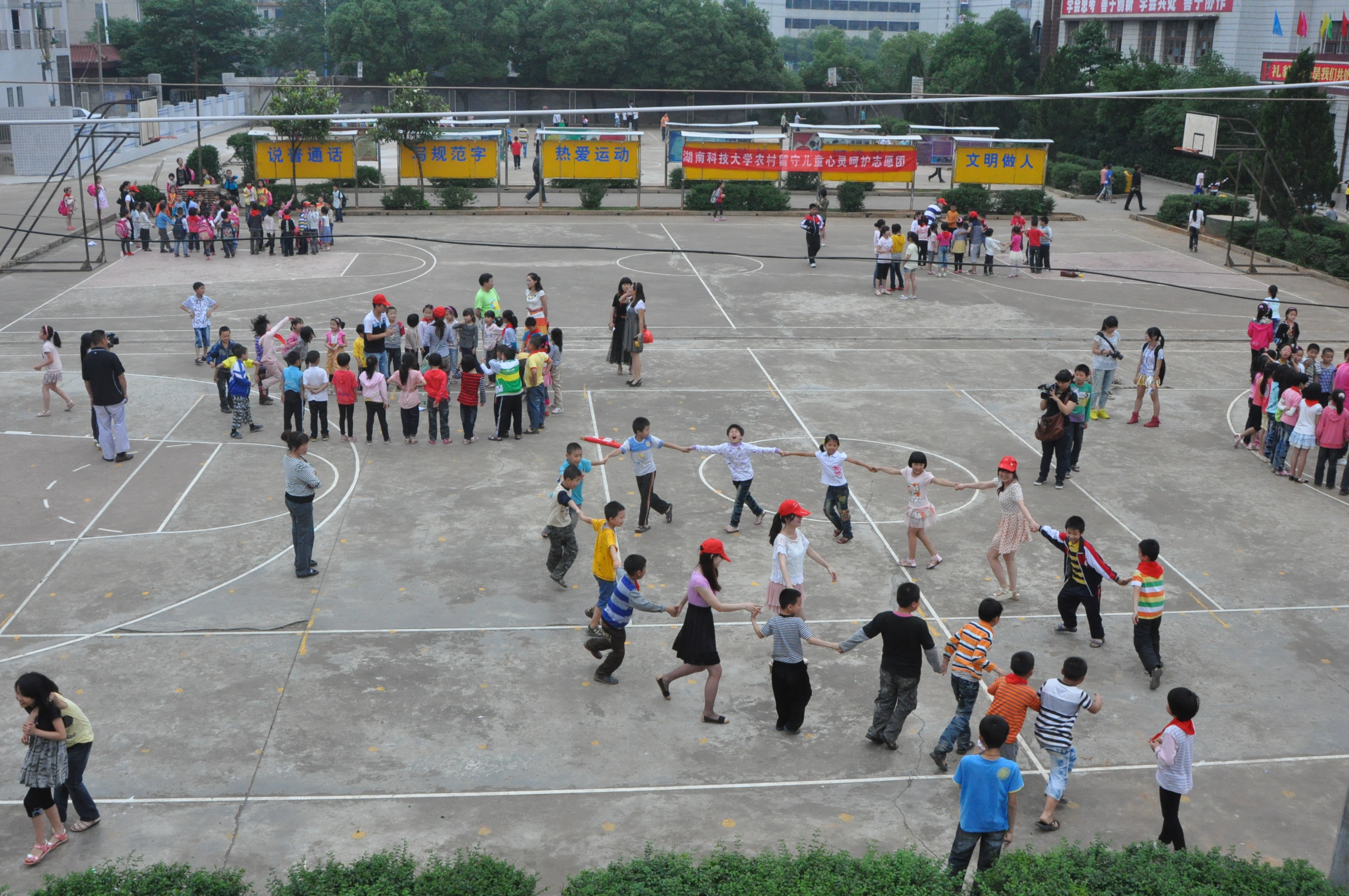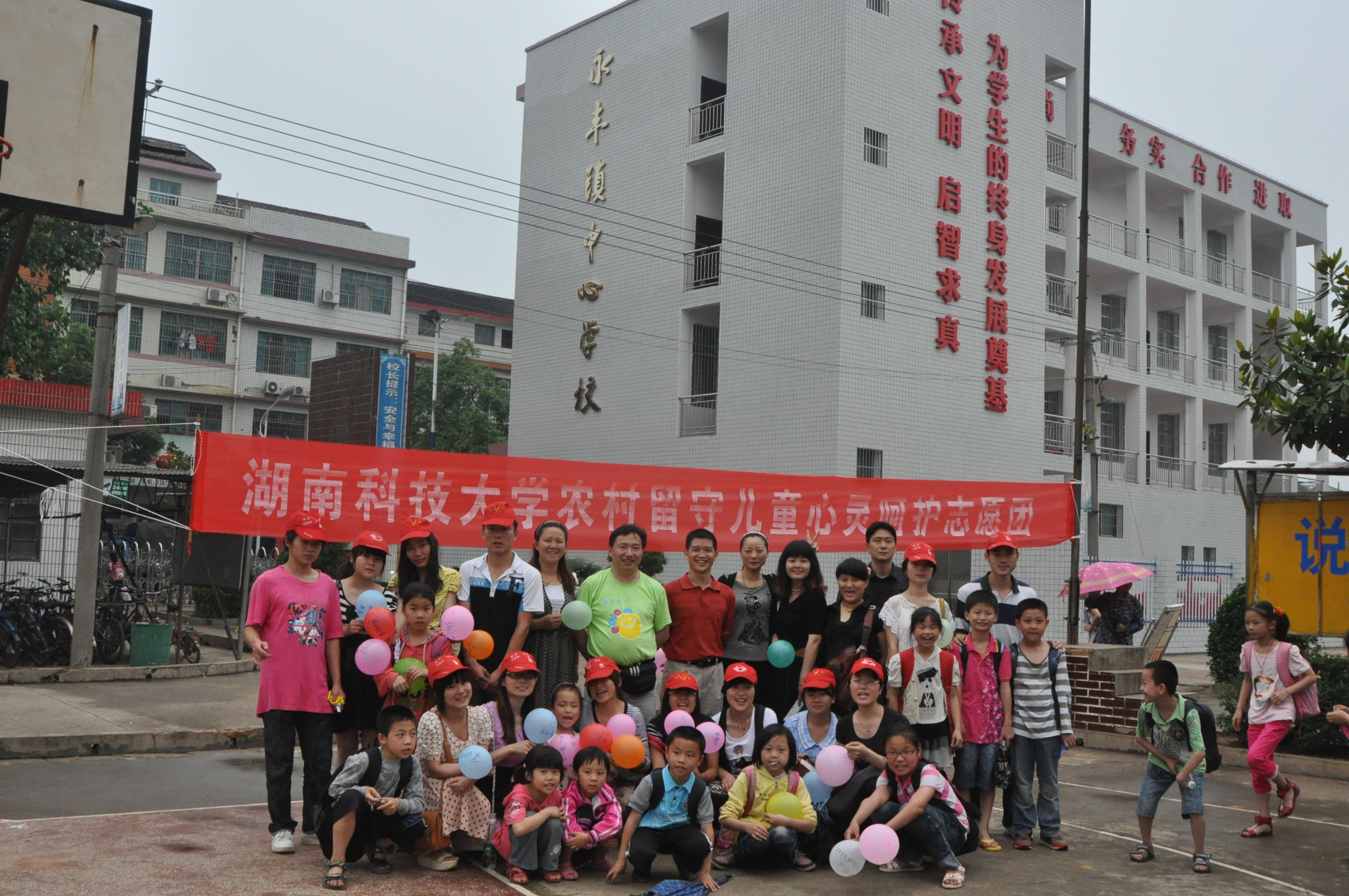 早上八点志愿团一行人在王书记的带领下从球盟会出发,志愿团成员包括10名研究生和各个年级选拔出来的本科生,此次活动分三队人马,一队前往湘乡市虞塘镇中心小学,带队老师袁克俭、一队在双峰县永丰镇中心公司,带队老师王书记,还有一队由研究生刘燕带领前往娄底市双峰县界牌小学。上午十一点左右三队人马都到达目的地。志愿团成员首先和公司的领导及老师进行交流互动,对参加此次活动的留守儿童进行了一个初步的了解,以便积极配合接下来的团训和辅导工作。下午组员在上午认真了解留守儿童们基本情况的基础上,并由王书记指导做了团体训练,团训中志愿者与可爱的员工们相处的非常融洽,并针对性的了解员工们的心理和学习状况,现场充满着浓浓的欢乐与温情。在这种愉快的氛围中,组员与留守儿童们度过了一个美好的下午。在仔细研究留守儿童现存的一些问题之后,志愿团一些成员也提出了自己对于问题的看法以及解决这些问题的建议和措施,带着这些问题与讨论的一些结论,志愿者们在活动的最后阶段对个别留守儿童做了家访以便更细致的了解他们的基本情况以及为以后的学习和教学工作做准备。