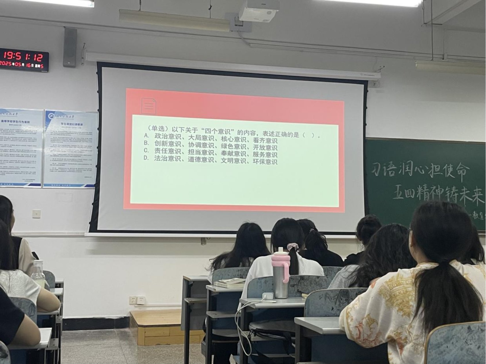 主持人向学员们深度剖析了**在庆祝中国共产党成立100周年和庆祝中国共产主义青年团成立100周年上的讲话,并详细地解读了五四精神的内涵,激励大家将五四精神付诸于实践,将习语牢记心中。学员们对**对青年的期望以及五四精神有了更深刻的认识。在“知识竞答”环节中,大家积极参与,配合默契,营造出了和谐融洽的集体氛围,青马培训班的团结协作精神与积极学习风貌得以充分展现。