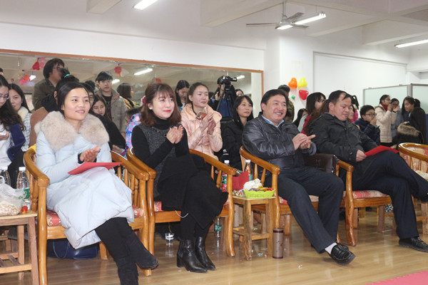 晚会开始,《歌舞青春》舞动现场气氛,青春靓丽的白色精灵点燃热情,大家在动感的舞蹈中感受青春的活力与美好。民歌独唱《美丽的心情》唱出特色民歌味道。接着,动静相得益彰,古筝独奏《乡韵》温婉悠长,让人如痴如醉。小品《女寝生活》引得现场笑声连连,掌声不断。之后是游戏环节,观众们积极参与,纷纷跃跃欲试,主持人现场为得奖者发放了奖品。歌曲串烧《bang bang》、《希望》、研会干部合唱《时间都去哪儿》让观众伴着歌声思绪纷飞。上半场,王书记、周经理、滕老师纷纷献歌,让晚会达到第一波小高潮。首先,王书记和滕老师深情演绎对唱歌曲《心雨》,继而王书记又以一首《女人花》献礼元旦晚会,周经理演唱《小白杨》引得现场观众阵阵掌声。