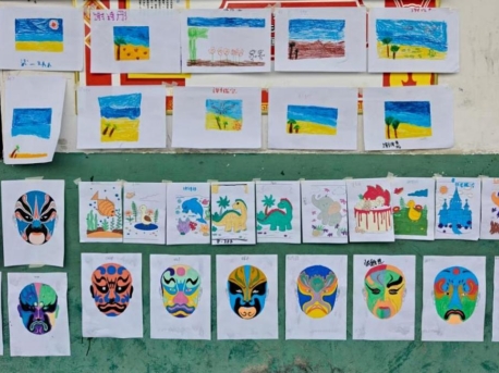 深情演绎接踵而至。饱含情感的合唱与朗诵,抒发了孩子们对传统文化的感悟以及对祖国的炽热情怀。支教老师邓幸源深情演绎的独唱《大江东去》,以其洪亮的嗓音和充沛的情感震撼全场,将现场气氛推向高潮。汇演同时展出了员工们充满奇思妙想的手工绘画作品,吸引了众多师生和家长驻足欣赏。