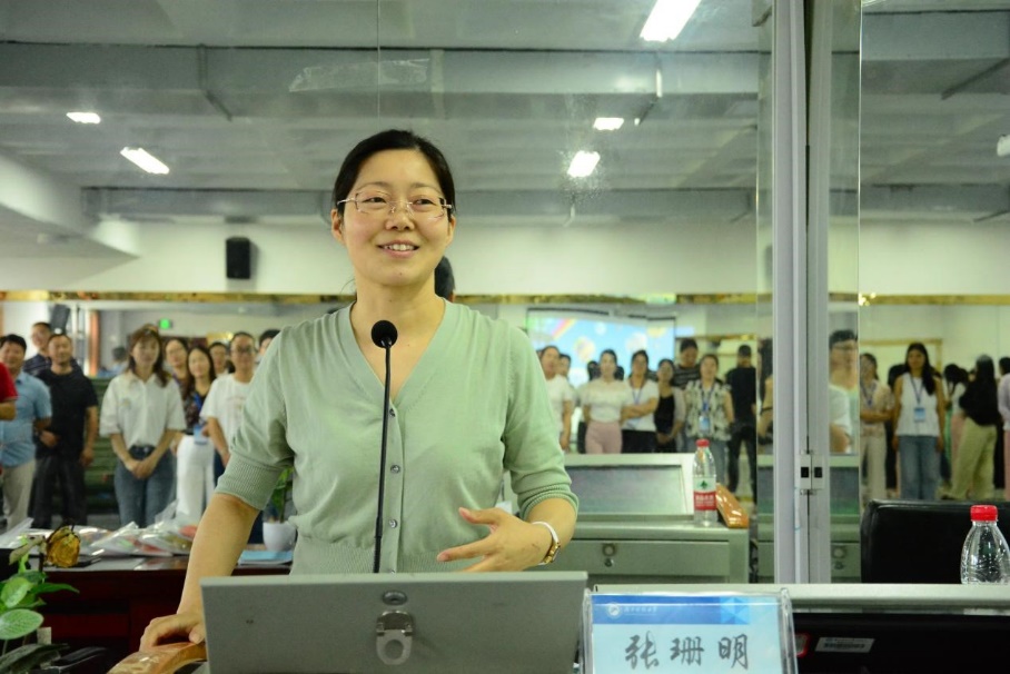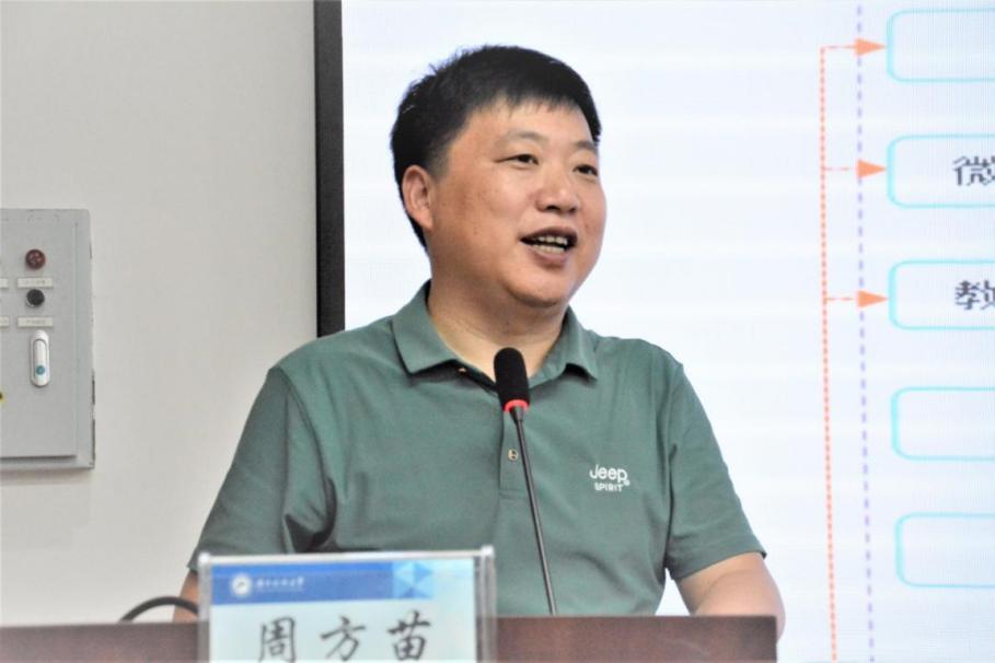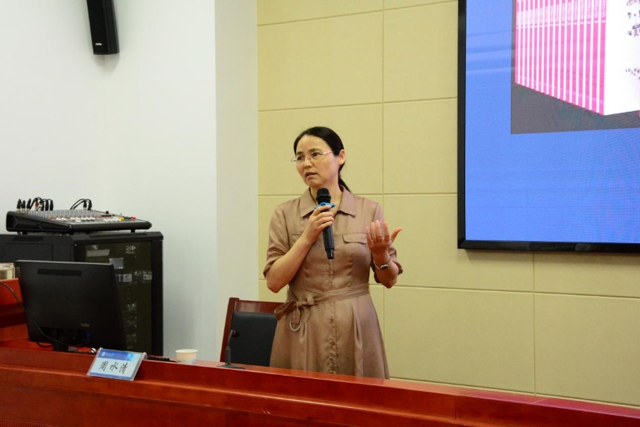 湘潭市雨湖区教育研究培训中心周水清教师为培训师班带来了题为《基于新课标理念下的课堂教学改革》的专题讲座。她从主题聚焦、实践探索、成效初显、现状反思和工作展望几个方面对“为未来,从课堂出发”这个主题全方位地讲解,为培训师以后的课堂教学提供了指引。