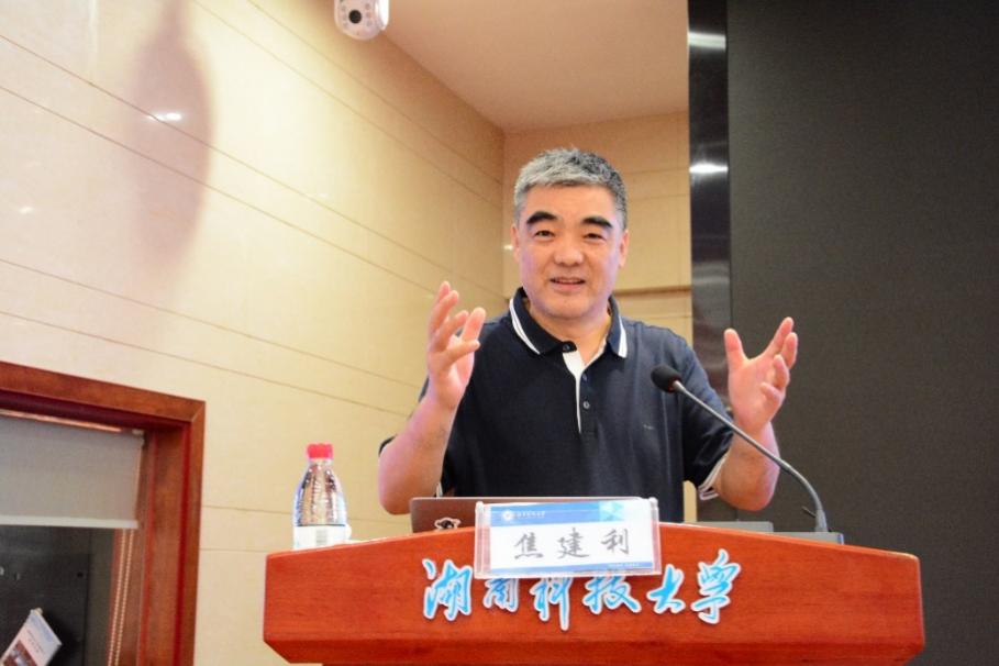 随后,球盟会人文公司吴广平教授作了《教育是爱的事业》的特邀报告。他通过解读孔子的“仁爱”思想、阐述陶行知“爱的教育”理念,指出“爱是教育之本”的核心内涵,接着结合自身经历紧扣“敬畏”“磁场”“专一”“执着”“奉献”几个关键词,生动幽默地诠释了教师职业应该具有的丰富内涵、过硬的素养、崇高的使命。吴老师的报告现场掌声雷鸣、笑声不断,是一场高水平的师德修养学术讲座。