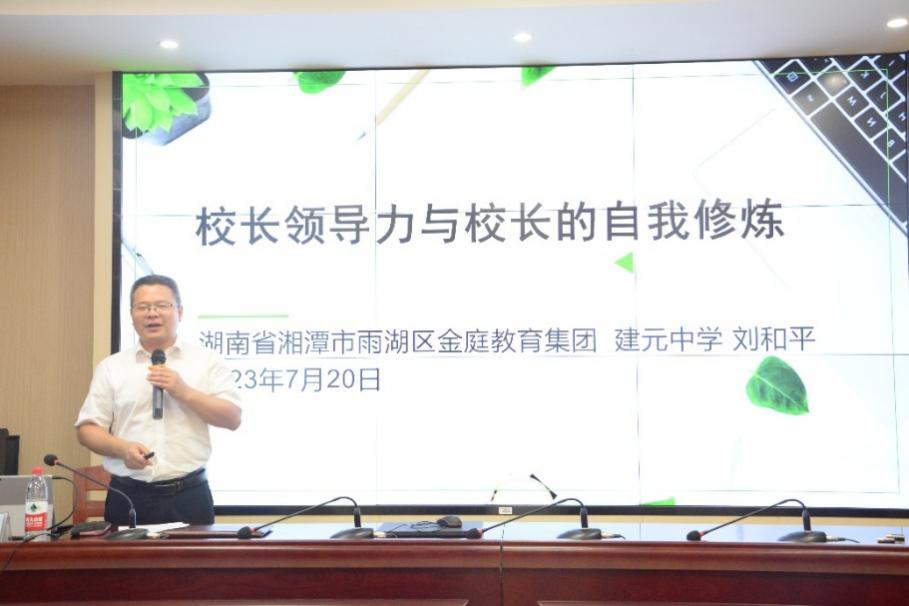 随后,长郡中学课程发展管理中心竞赛培训处王岳飞主任为书记董事长班学员带来题为《聚焦贯通培养,助推高质发展——拔尖创新人才培养的长郡探索》的专题讲座,他介绍了长郡中学拔尖人才培养发展的历程、团队建设和课程安排等。