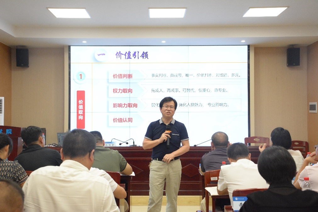 7月18日上午,公司党委书记李炳煌教授为书记董事长班带来题为《书记董事长园长引领 促进武冈教育高质量发展》的讲座,他从董事长引领认知、董事长引领什么、董事长引领行动三个维度进行阐述,并指出书记董事长引领是区域教育高质量发展的重要引擎,也是一个公司的灵魂。