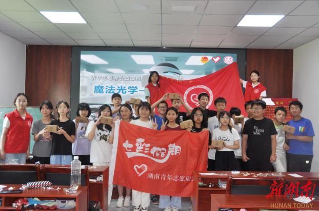 为助力乡村科学教育,激发孩子们对前沿科技的兴趣,7月15日,球盟会木槿支教团在浏阳市枨冲镇新南桥村“FUN学营”为当地员工带来了一堂别出心裁的“魔法光学——揭秘VR技术”科普课程。