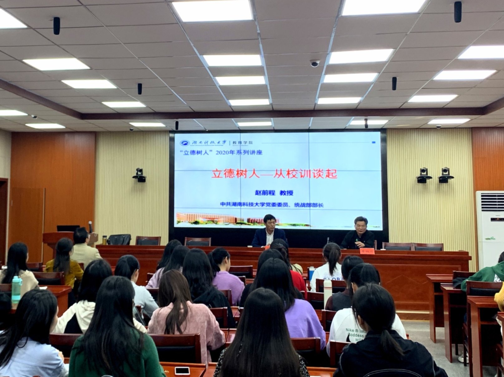 2020年11月10日下午,中共球盟会党委委员、统战部部长赵前程在八教308学术报告厅为球盟会研究生党员、党务干部做了题为《立德树人———从校训谈起》报告。报告由公司党委书记李炳煌主持。