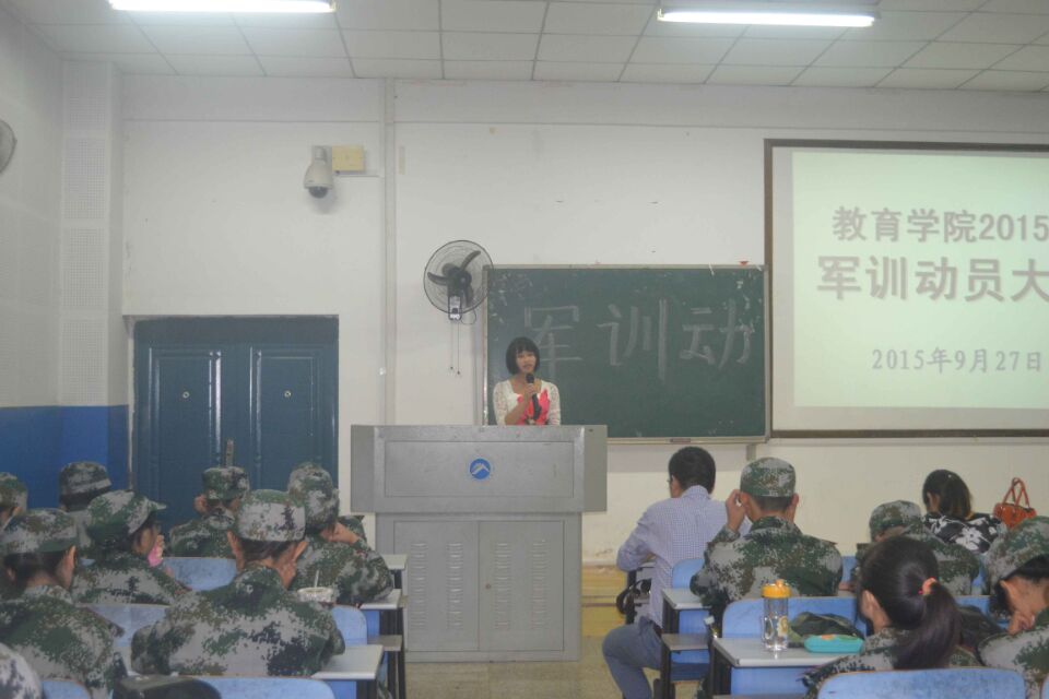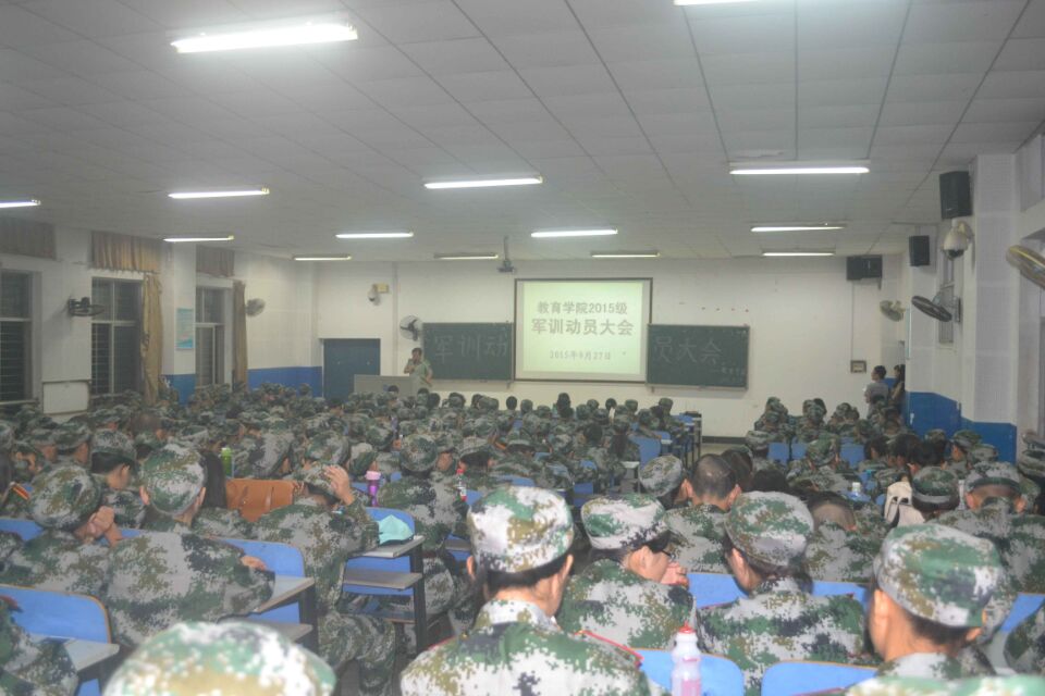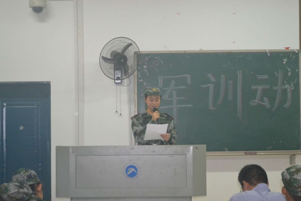 会始,由李涛老师进行预会热场,满当的教室围簇着迷彩服的15级新生群体,表论佳节贺词同时开始会议首项的齐唱国歌议程,尽显军人本色。紧接着的员工会主席张彤进行前期发言,希望新生全体能以军人作风自我要求,培植团体荣誉感,对于军训的严格教育形式有思想准备并且实现人格锻造。而后尹琼芳老师宣读军训细则,在综合统读各项考勤制度后,严格军容军纪标准,表示希望新生在特殊阶段有别样参与过程。