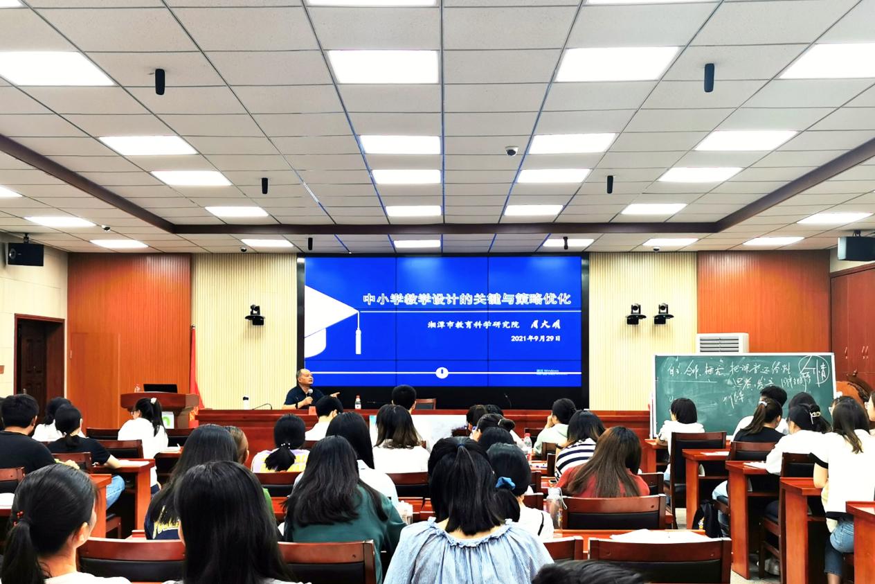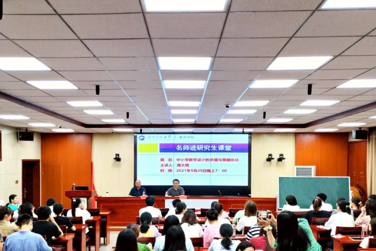 9月29日晚,湘潭市教育科学研究院经理、党委书记、特级教师周大明应邀莅临公司,做客“名师进研究生课堂”,在第八教学楼308学术报告厅为公司师生带来《中小学教学设计的关键与策略优化》的主题讲座。讲座由球盟会副经理谭千保主持,2020级学术型硕士研究生、教育硕士专业学位研究生和公司推荐参加湖南省研究生教学技能大赛的选手到场聆听学习。