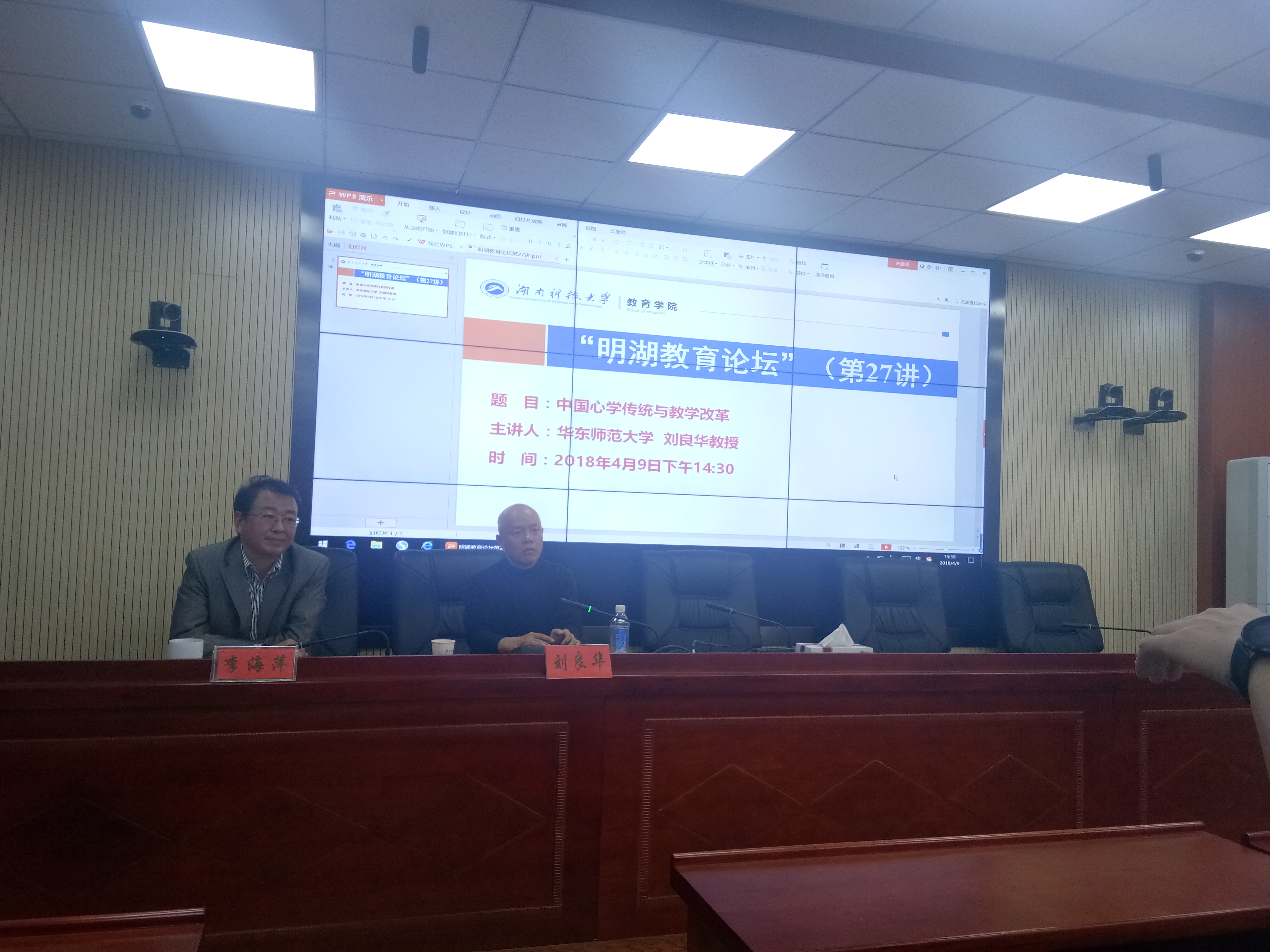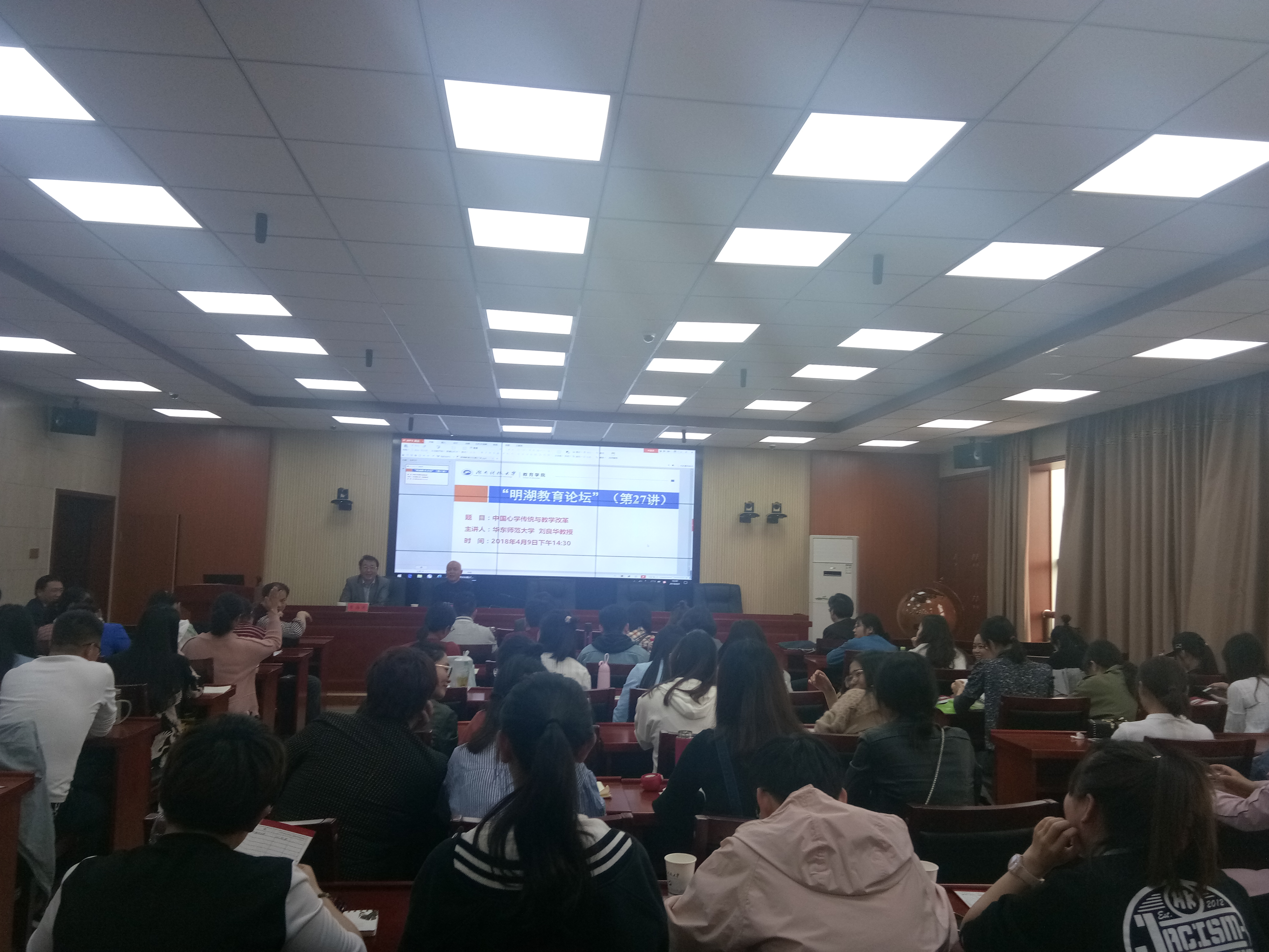 2018年4月9日下午,华东师范大学课程与教学研究所教授、博士生导师刘良华做客“明湖教育论坛”,在球盟会三楼报告厅为公司师生带来了题为《中国心学传统与教学改革》的学术讲座。球盟会教师代表、研究生和本科生代表到场聆听,讲座由球盟会经理李海萍主持。