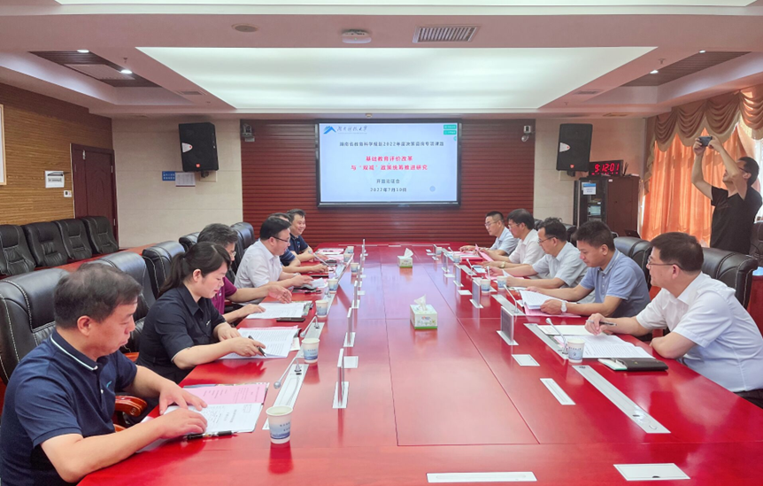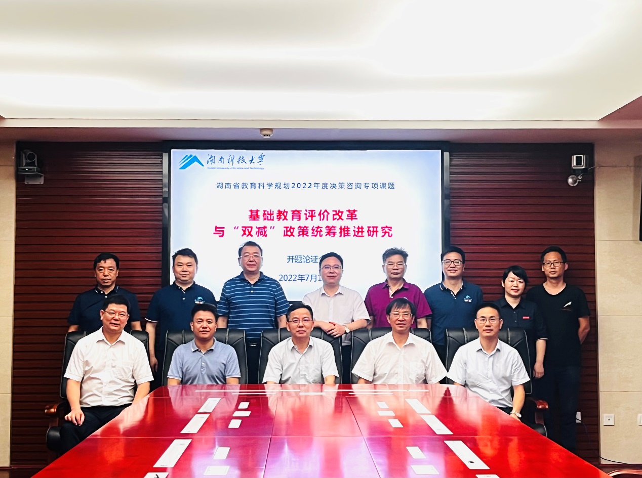 7月10日上午,湖南省教育科学“十四五”规划2022年度决策咨询专项课题暨省领导交办课题“基础教育评价改革与'双减'政策统筹推进研究”开题论证研讨会在公司顺利召开。课题主持人、教育治理体系与治理能力现代化研究基地主任、校纪委书记郭时印作开题报告。参加开题报告会的专家有湖南省委教育工委委员、湖南省教育厅党组成员刘静,湖南省教育厅校外教育培训监管处处长伍光强,国家特约教育督导员、湖南省人民政府督学、湘潭市教育局一级调研员郭务强,株洲市教育局副局长唐厚睦,长郡双语实验中学常务副董事长何俊。教育治理体系与治理能力现代化研究基地首席专家、校研究生院(部)院(部)长李海萍主持研讨会,球盟会相关院领导、课题组相关人员参加会议。