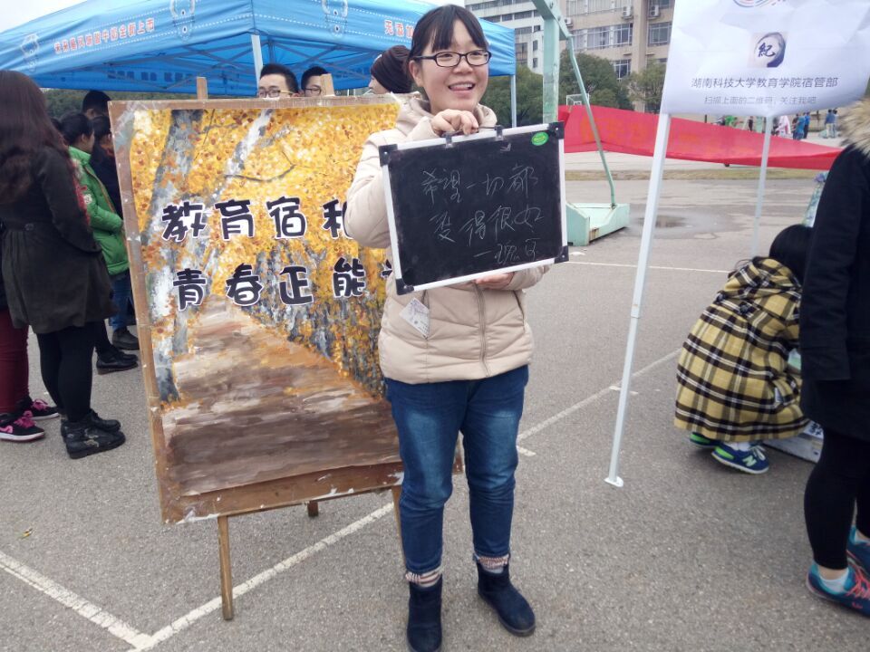 大学中的同学来自天南海北,而能够相聚在一个宿舍、共同生活四年是一件幸事。即使在生活中室友之间常常会发生一些小摩擦,但当他人提起寝室时,每个人都会尽力维护自己寝室的形象,从心底里感觉到那是像家一样温暖的地方,远方的“第二个家”。在此次的户外宣传活动中,许多员工表达出自己对寝室、室友深厚的感情。现场提供的小黑板上、便利贴墙上写满了这样的话,“未来三年有你们陪伴是我最幸福的事”、“加油,一起努力生活”、“家人们永远相亲相爱”、“希望一切都变得很好”、“寝室永远和谐美满”、“每一天都可以美美哒,认真学习养成美女学霸”、“我们都曾不堪一击,我们终将刀枪不入”........员工们真诚的言语中,或体现对室友的感恩,或表达对未来生活的期盼,或抒发自己的志向,种种都源于那份从朝朝暮暮相处中酝酿出来的亲密感情。