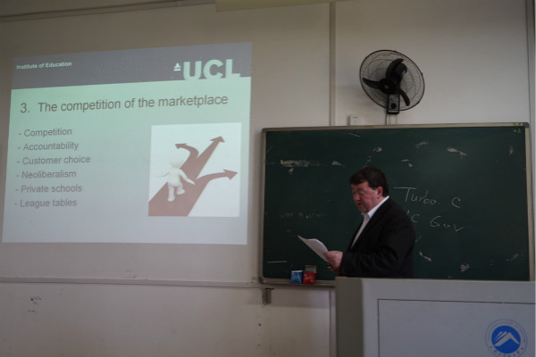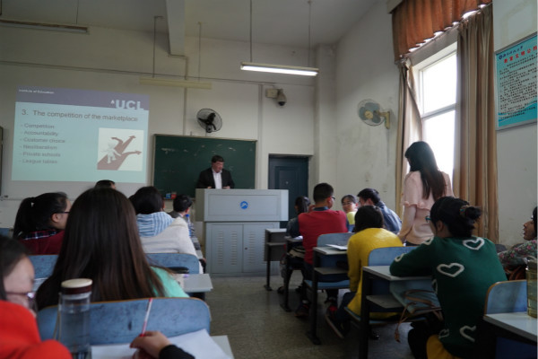 Gary 教授全程用英语讲学,认为教育观念的改变都是在宽广的社会政治背景下发生的,分别从教师专业化、学术自由、学习和学习者性质等多个维度来阐述国家和教育市场对英国教育观念产生的巨大影响和变化,同时评估了这些教育观念变革的性质与影响,以及对它们的未来前景作了初步展望。