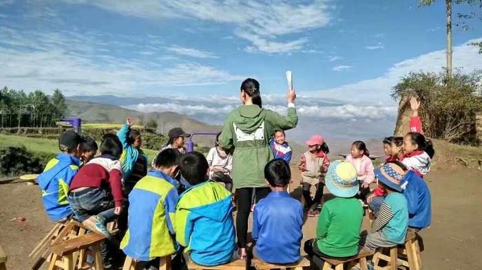 青海支教队李蕾老师说:“青海科才昂小学的员工从住的地方到公司要步行半小时,路一边是更高的山,另一边是悬崖一样更高的山。可为了升学,孩子们暑假到这里上学没有一点怨气。”