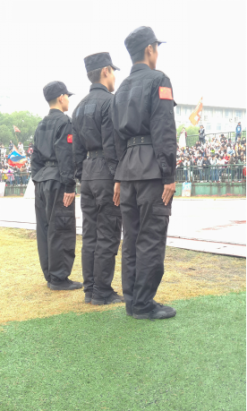“虽然不能进入到赛场上,但是偶尔瞟几眼也感到满足了,站在这里是累,但是看到大家的呼声这么高,都这么有热情,也没什么怨言,很高兴能站到这里。”“训练虽然苦,但是每次运动会时还是会争取来这里值班。因为每次值班的人数都是有限的,所以都要考自己来争取。”2015年10月30日,湖南科大秋季运动会进行时第二天,这是在采访公司信息安全队成员时他们所提到的。听不到任何怨言,他们以一种累并快乐着的状态存在着,在入出口处、跑道旁、楼道旁都能看到他们挺直的身躯。“头要正,颈要直,眼神要坚定,要狠……”他们就这样每天严格要求自己训练,在赛场上展现出军人最美的姿态。或许在别人眼中他们是高冷的,但是很少有人会提及到他们背后的心酸,每天摸黑起来训练,每晚伴着月光孤独回家,而这一切,他们选择承受。运动会上呈现的就是他们最美的自己!
