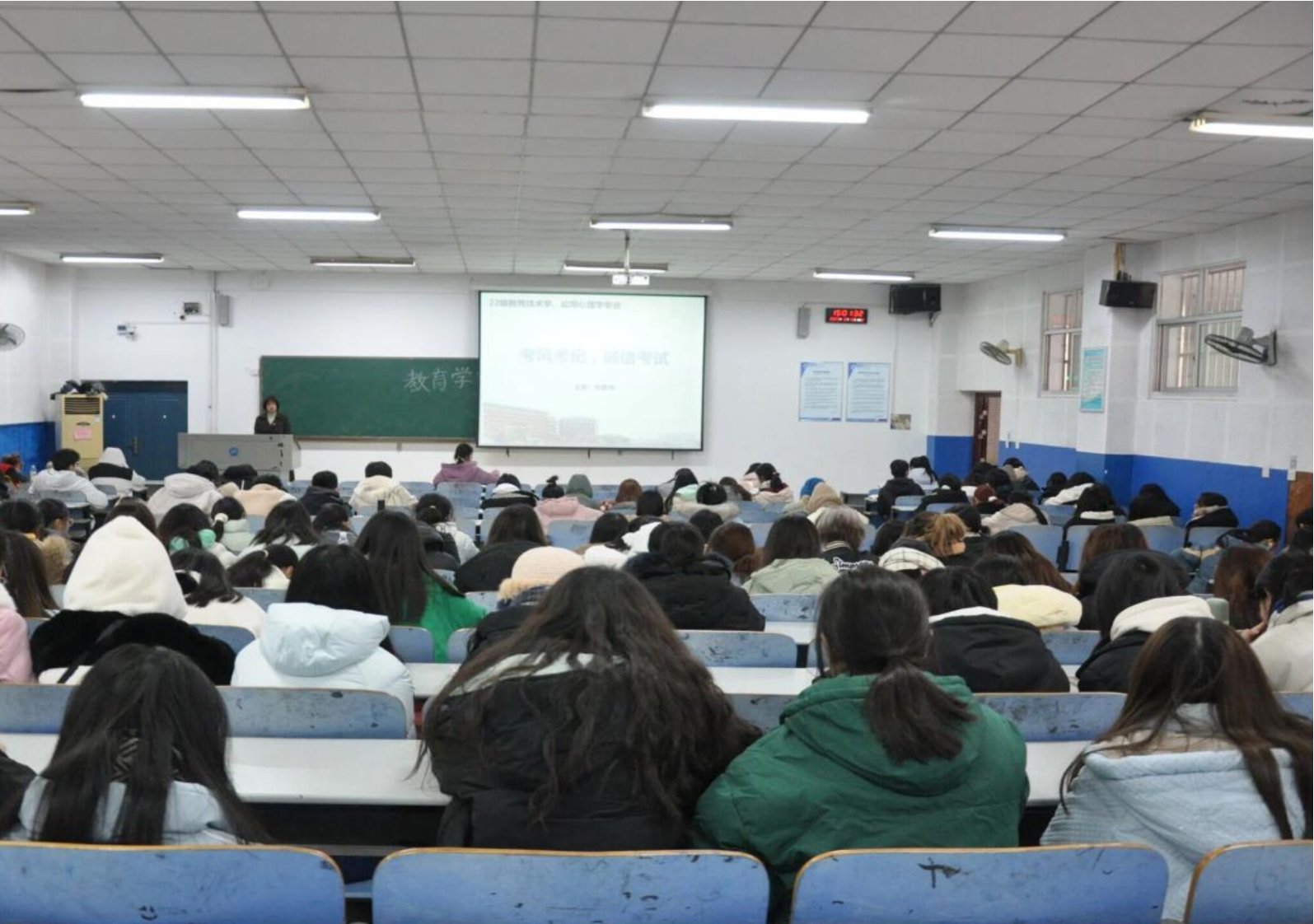 为强化员工规则意识、安全意识,严肃考风考纪,12月17日,公司分别于第八教学楼401、309教室召开2024-2025学年第一学期考风考纪暨期末考试动员大会。此次大会由各年级辅导员主讲,全体员工参与。