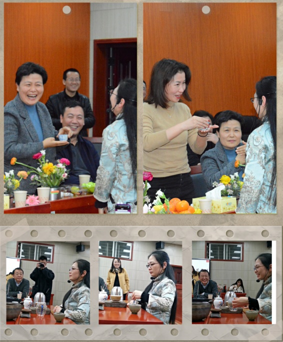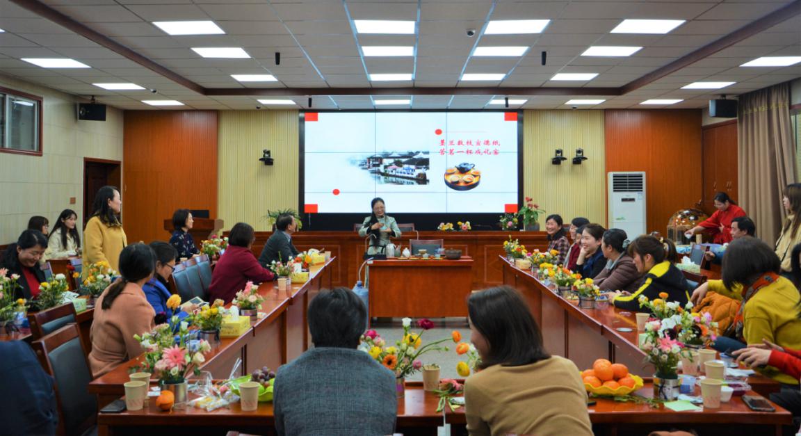插花环节结束后,由公司陈俊兰老师给大家讲授了茶道知识,并进行优雅的茶艺表演。现场邀请男嘉宾刘宇文进行茶艺礼仪示范互动,所有的嘉宾在这春暖花开时节,伴着古典音乐,欣赏着活动现场大屏幕滚动展出的公司女老师们业余兴趣爱好创作的字画、篆刻、摄影以及盆栽绿植作品,大家围坐一起,闻香品茗。鲜花养眼、清茶养神、德艺养心、关爱暖心,娇艳的鲜花映着老师们脸上灿烂的笑容,扑鼻的花香衬托出老师们优雅的气质,整场活动温馨而雅致,“咔擦”一声,定格节日美好。