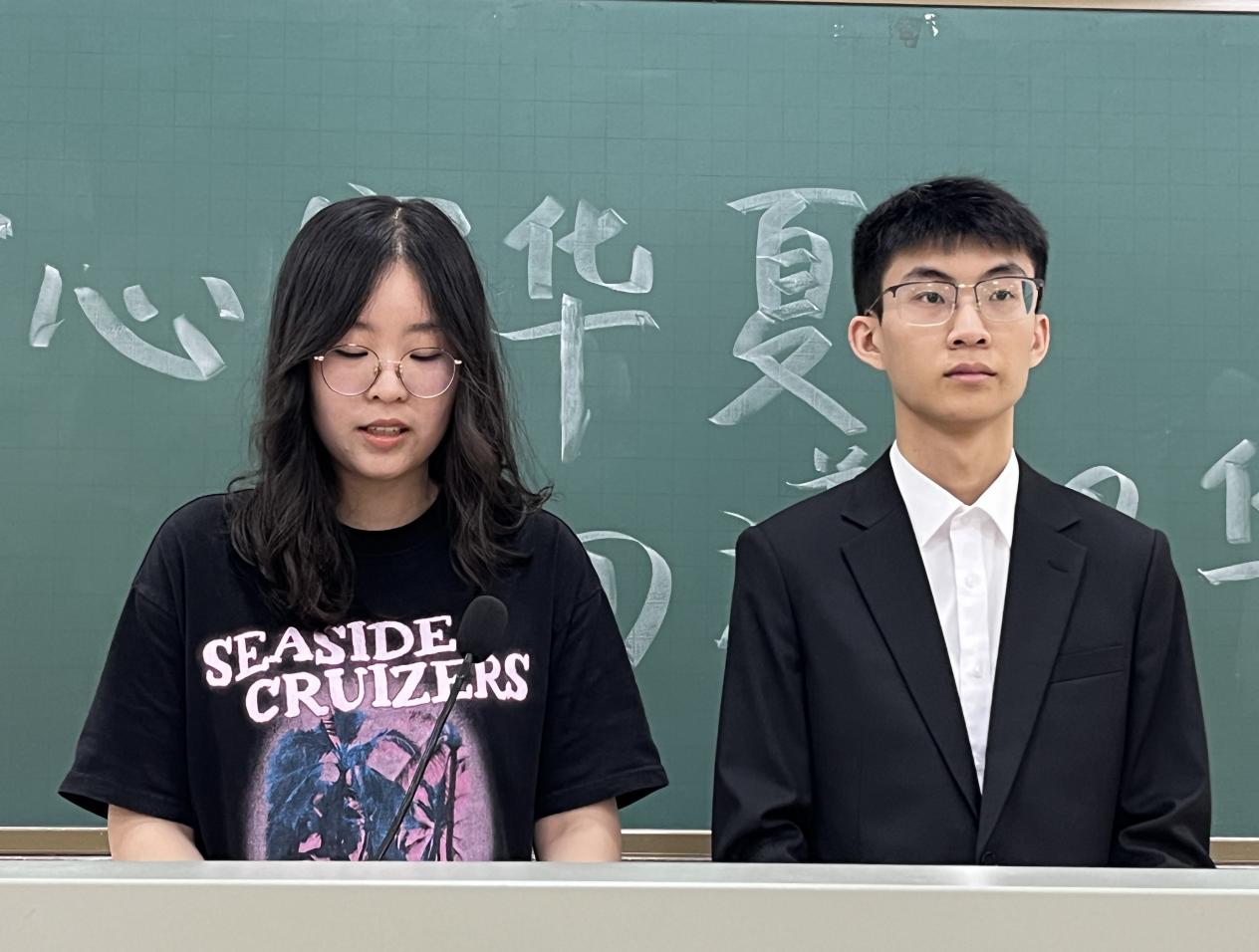 21级学长王鑫阳发言,他号召青马培训班成员学习五四精神,呼吁大家努力学习科学知识,激发了爱国情怀,增强了为实现中华民族的伟大复兴奋斗不已的责任感。