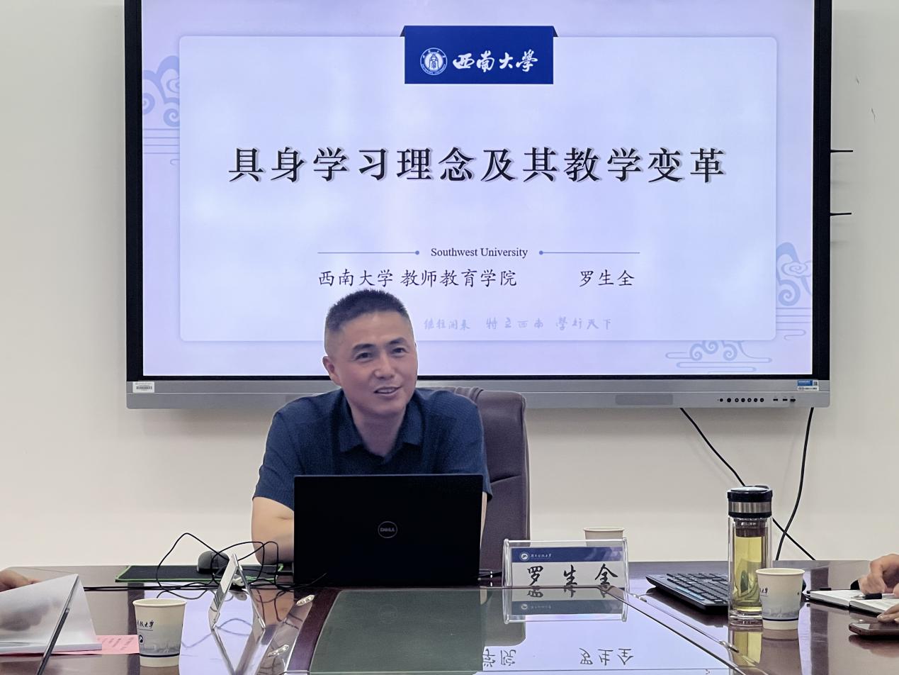 6月28日上午,教育部“青年长江学者”、西南大学教师球盟会经理罗全生教授来校讲学,以“具身学习理念及其教学变革”为题为球盟会师生作学术报告。讲座由公司教学评建与教师发展中心主任周险峰教授主持,球盟会青年教师代表、研究生代表到场聆听。