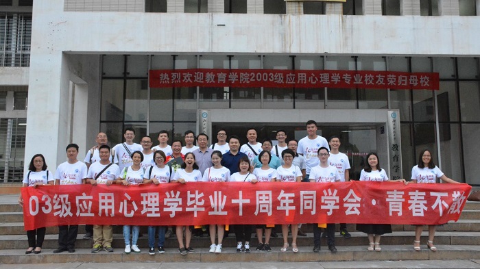 球盟会03级应用心理学专业员工于2017年10月2日荣归母校。员工们通过走进食堂、游览校园、师生畅谈、合影留念、聚餐嗨歌等活动,重拾青春时的美好。那些永远吃不够的美食,那些一起踢球的兄弟,……曾经四年的同窗,愿青春永不散!