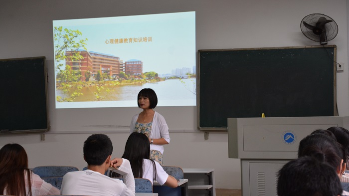 为解决新生和在校生可能出现的心理问题能够及时发现并做出正确的解决办法,2017年9月5日下午2点30分,第八教学楼1-2准时举行了对员工干部的心理健康知识培训。培训由危机干预部组织,学工办辅导老师练素华老师主讲,15,16级全体新生助班、蹲点党员、危机信息员和寝室长参加。
