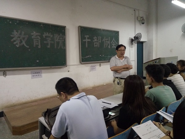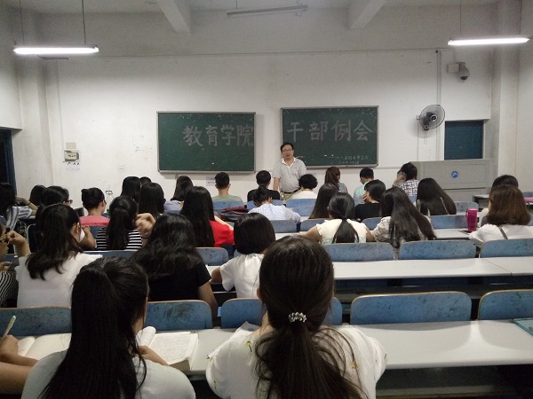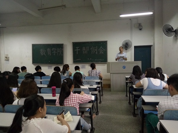 18:10左右,李涛老师发表讲话,拉开了本次会议的序幕。他的讲话内容主要有三点:第一、期末考试即将到来,各干部要做好期末考试准备工作,并严格遵守考试纪律;第二、暑假紧随期末考试而来,作为新学期的开始,暑假时期的工作内容繁多:新学年的缴费流程、国家助学贷款及公司贫困生助学金相关事宜、假期重修及补考事项等,都是每名干部要注意的地方;第三、时刻谨记保护自身的安全,包括人身安全和财产安全。最后,李涛老师祝在座所有同学考试顺利,过一个愉快的暑假。