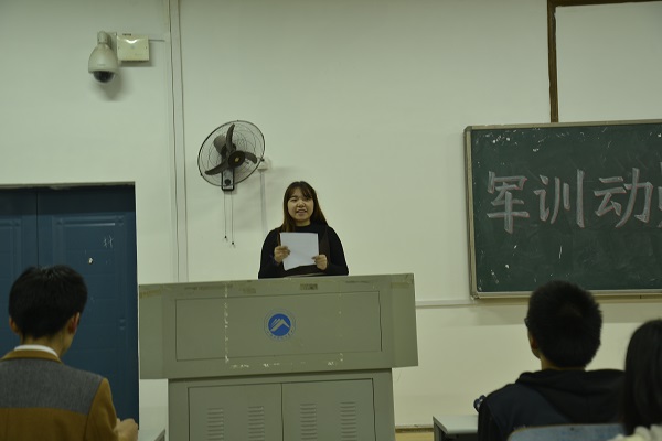 接下来,学工办主任李涛为新生们详细地宣读了军训的各项纪律。其中包括了军训时期的训练计划、请假规定、作息时间等等各个方面的内容。李老师着重强调了着装要求和考勤制度。他提出:“着装要体现出军人的风貌和气质。军训倡导的是半军事的生活管理,全体16级新生必须服从命令、听从指挥。”同时,李老师也向大家介绍了包括集体评优和个人评优在内的军训评优项目。