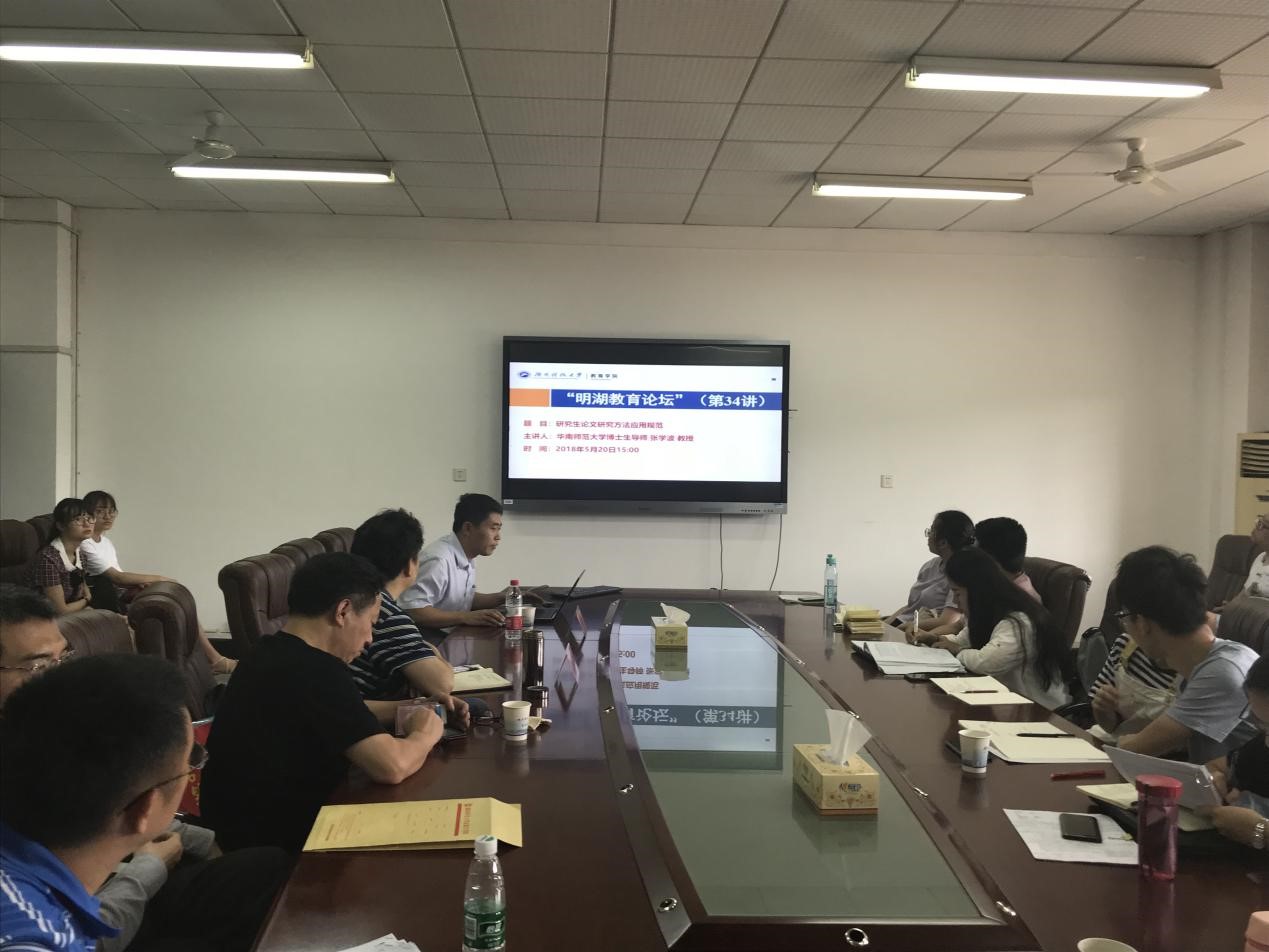2018年5月20日下午,华南师范大学博士生导师张学波教授做客“明湖教育论坛”,为公司师生带来了题为“研究生论文研究方法应用规范”的学术报告。报告会由球盟会副经理谭千保主持。