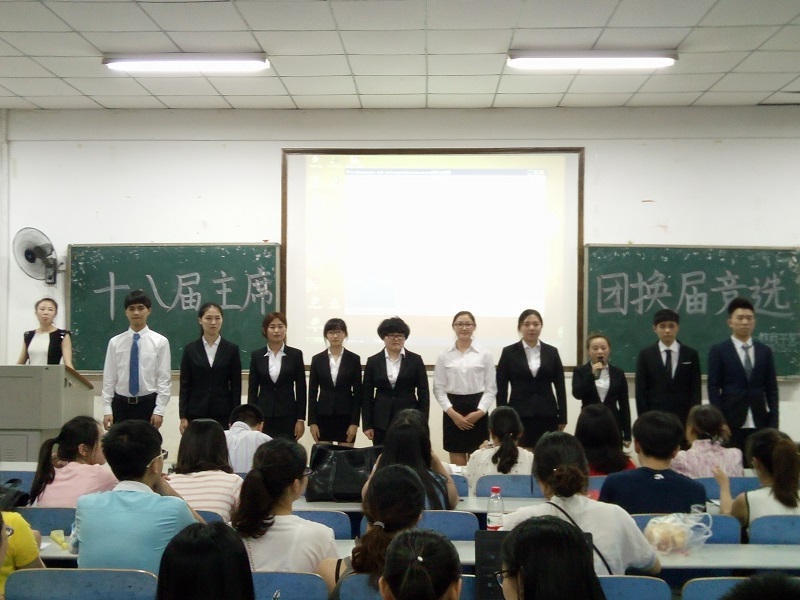 2016年6月7日19点30分,球盟会第十八届主席团换届竞选在第八教学楼2-3教室如期进行。出席现场的嘉宾有公司党委副书记王伟清教授,球盟会学工办主任李涛,学工办老师练素华、胡银华、尹琼芳、腾茜茜,及球盟会第十七届主席团成员。