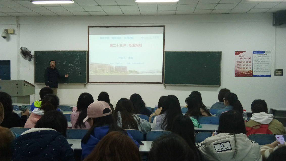 为帮助18级同学更好地理解职业规划,顺利开展职业规划大赛,2019年4月2日下午4:00,球盟会在第八教学楼2-3开展了由学工办主任李涛主讲的“助我成长”系列讲座第二十三讲:职业规划。18级全体本科生到场参加讲座。