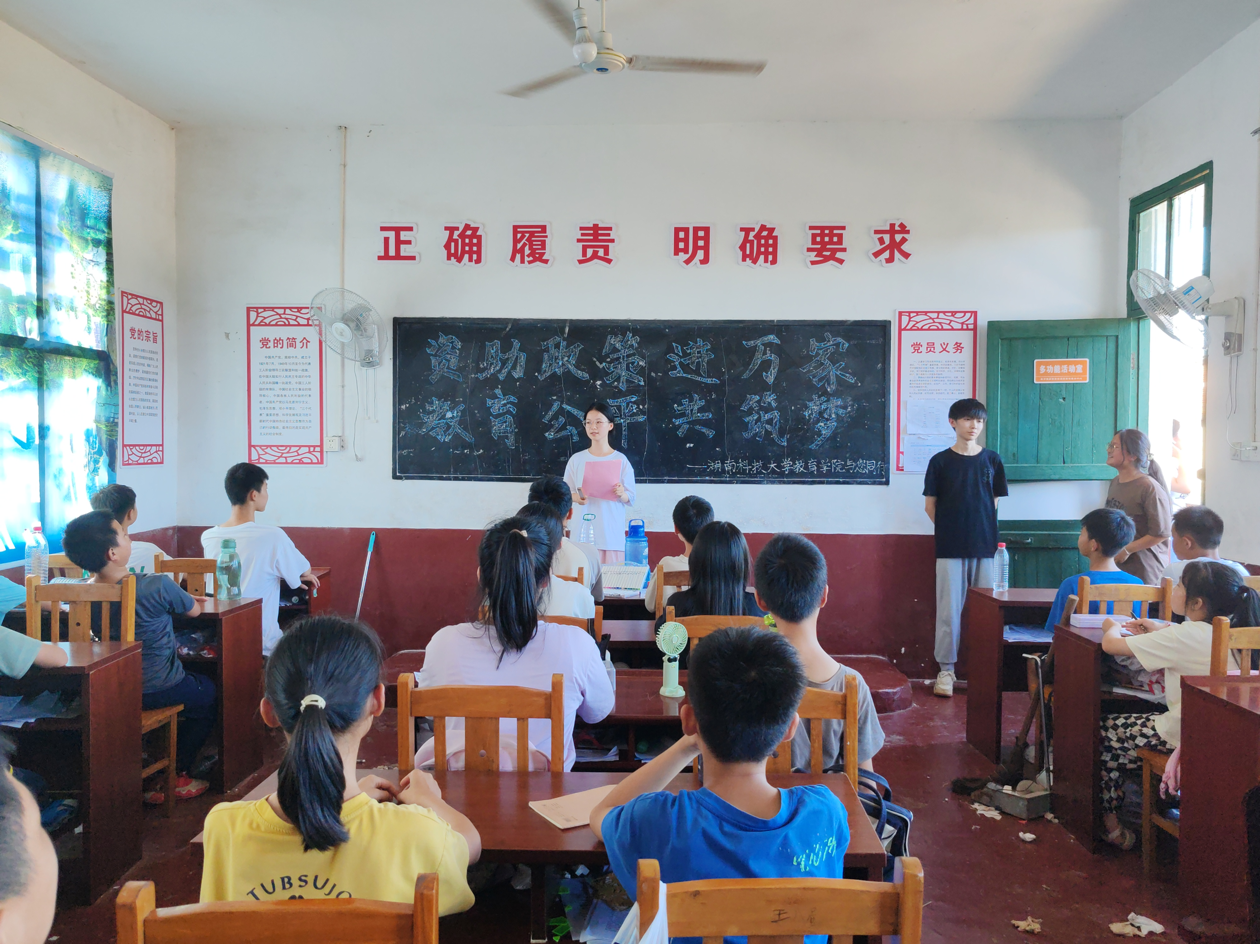 支教队员在活动中积极宣传建立健全家庭经济困难员工资助政策体系的重大意义、政策目标、基本原则、主要内容与相关工作要求,让孩子们更加了解资助政策的相关内容。