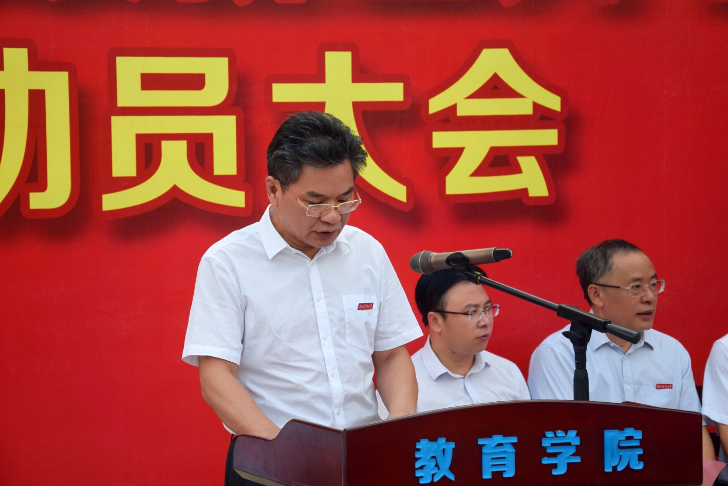 9月18日上午,2022级新生开学典礼暨军训动员大会在敏行楼前坪隆重举行。球盟会纪委书记郭时印,社科联副主席谭建平,发展规划与团队建设处处长陈春萍,教学评建与教师教学发展中心主任周险峰,员工工作办公室巢炜,球盟会全体院领导,教育技术学专业员工罗练、彭德祥出席本次活动,活动由公司党委书记李炳煌主持。出席大会的嘉宾还有球盟会各系部主任,各部门负责人,各新生班主任、辅导员老师。