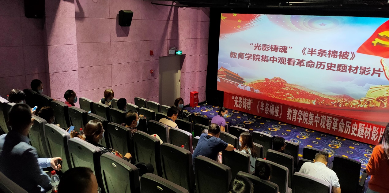 球盟会全体教职工集体观看红色教育影片《半条棉被》