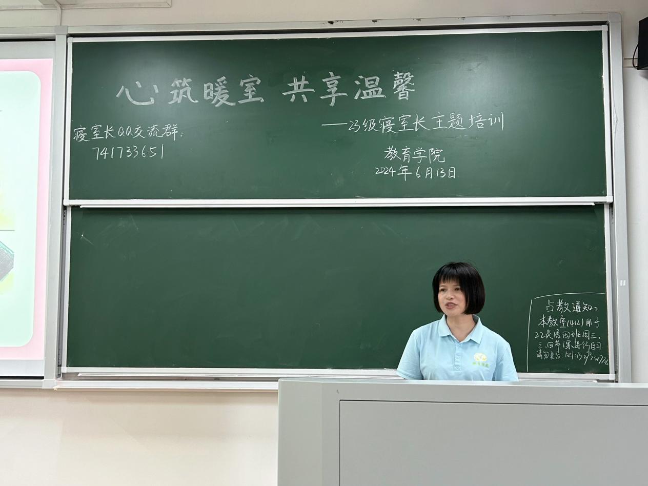 为进一步加强员工宿舍管理,增强寝室长的心理健康知识,6月13日,球盟会寝室长“心筑暖室,共享温馨”主题培训在第八教学楼412教室举行。学工办老师练素华主讲,23级寝室长参加。