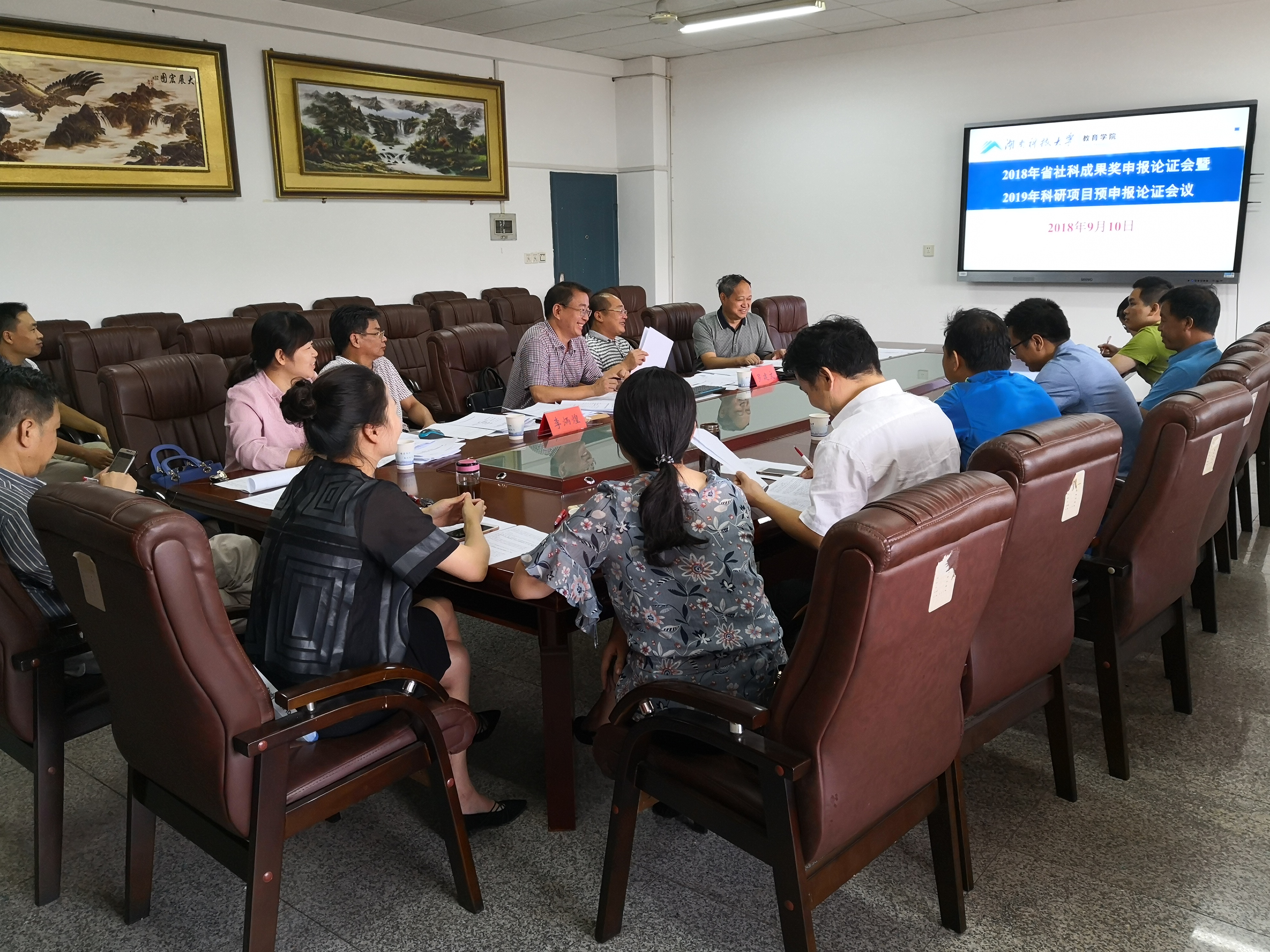 会议分两个阶段进行。第一阶段是2018年省社科成果奖申报论证会。公司拟申报省社科成果奖的老师分别汇报了成果的主要内容、社会反响以及获奖等基本情况,同时提出了在准备材料过程中的疑问和困惑,特邀专家根据历届省社科成果奖申报的相关情况,就老师们提出来的诸多问题交流了意见,并对省社科奖申报材料的准备、注意事项等进行了具体指导。