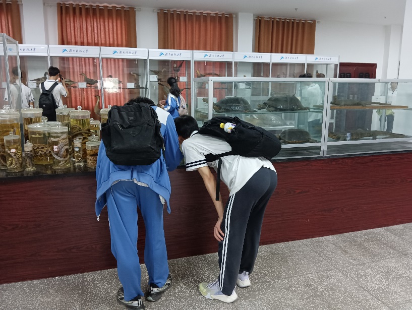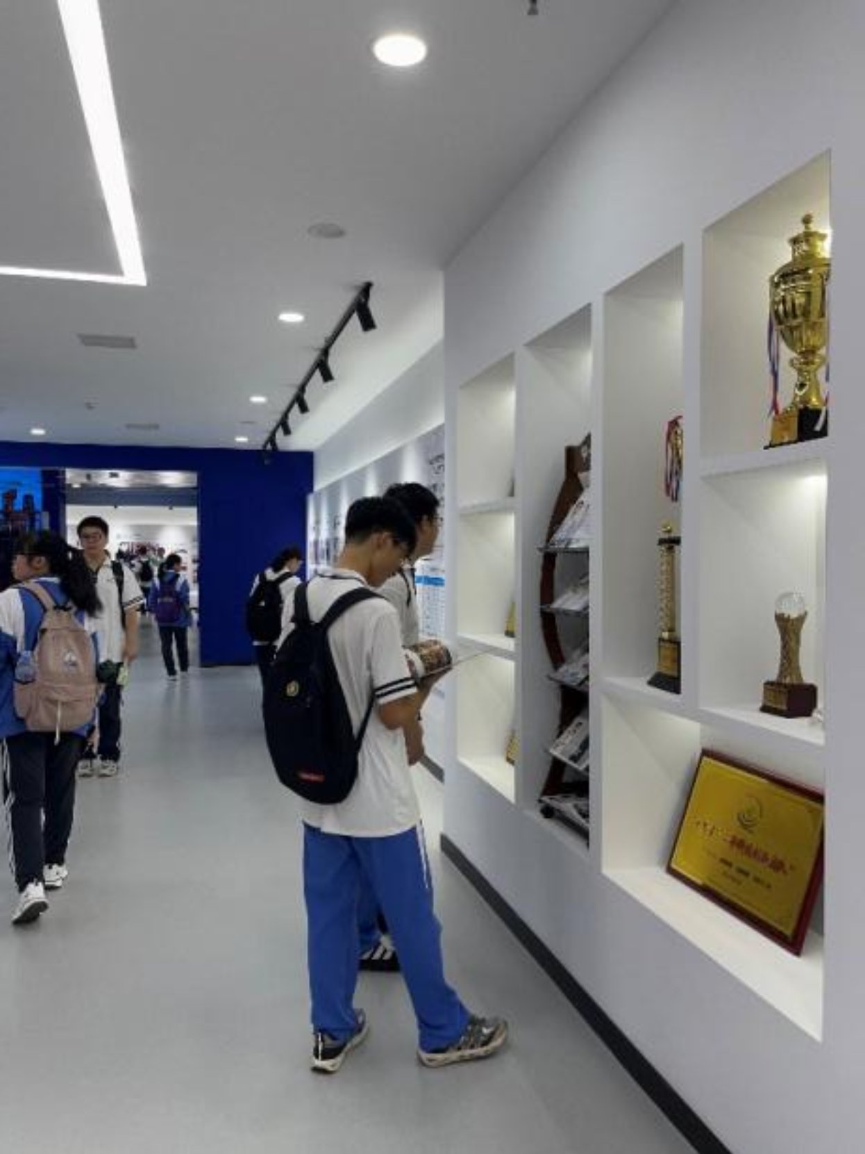 第四站,师生们走进球盟会校史馆,参观了解了球盟会自1949年建校至今70多年的发展历程,感受了“唯实惟新,至诚致志”校训背后所蕴含的科大精神。