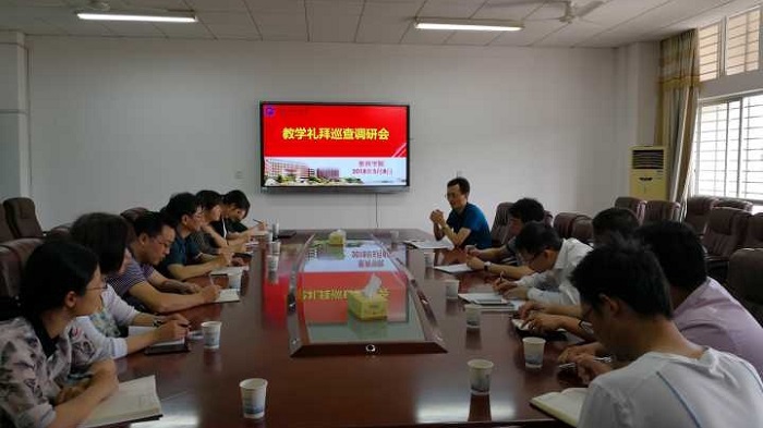会上,学工处处长尹风雨就此次调研的内容作了解读,并要求辅导员下班级组织开好此次教学礼拜主题班会,树典型、促班风、促学风,将班会主题内容落地、生根、发芽。随后招就处处长蒋利平对公司各专业的就业情况进行通报,并在促进员工就业和调整专业生源计划方面提出建议。公司党委副书记刘辉亚就此次调研内容从学风建设、日常管理、心理健康和就业等方面工作的开展情况、存在问题及下一步工作计划作了汇报。公司党委书记李炳煌介绍了公司的总体情况,详细阐述了公司的教务与学工工作联动情况,并和巡查调研组一起探讨如何从教与学两方面来改善员工学习风气,提高员工的学习积极性。