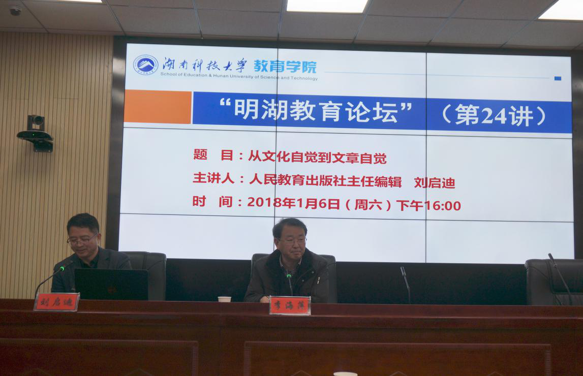 所谓“文化自觉”,刘启迪表示是中国著名社会学家费孝通先生提出的观点:生活在一定文化历史圈子的人对其文化有自知之明,并对其发展历程和未来有充分的认识。换言之,文化自觉是文化的自我觉醒,自我反省,自我创建。刘启迪强调大家应对知识求甚解,不仅要习得,更要通其道、明其理,有所思,形成自身的思维能力。刘启迪还结合儒学理念、佛教教义和道教教义别具匠心地进行总结,认为它们都是在追求完善的人的思想,而评价一个人是否为完善的人关键在于其是否有思维能力。同时,从“老虎不喜欢蹲在树下的生活习性”出发,启迪在座的研究生,未来做一名人民教师应该文理兼修,在教学中融合不同的思维方式,培养员工的思维能力。