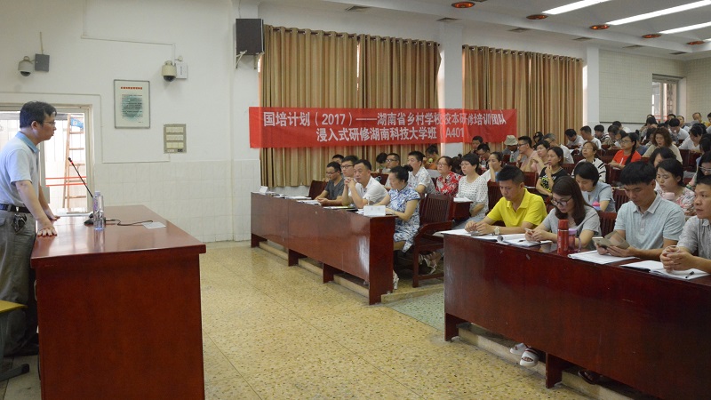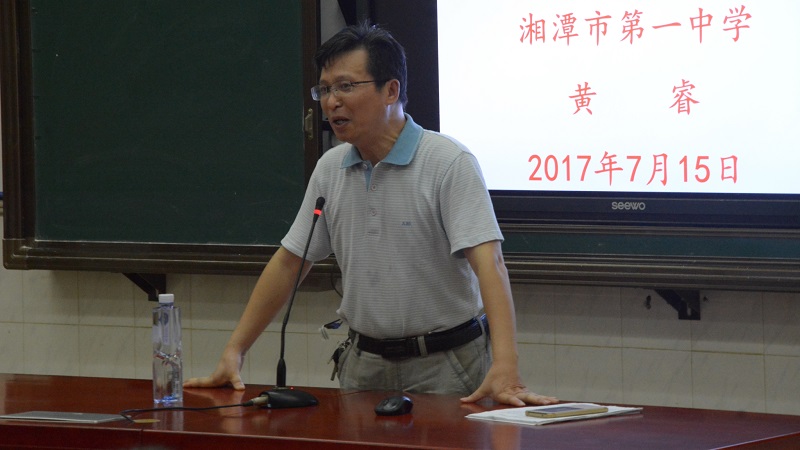 国以才立,政以才治,教育亦以才兴。2017年7月15日上午8.30分,为了进一步提高骨干教师的综合能力,湘潭市一中党委书记黄睿于湘潭市一中西座的多媒体教室给国培研修A401班的一百四十余名学员开展了“互联网视野下的校本研修”课程。并通过此次课程培训,以期学员们了解教育发展动态,拓宽新视野,通过互联网教育,引导和培养教师用发展的眼光看教育,最终促进员工全面化、个性化、可持续化发展。