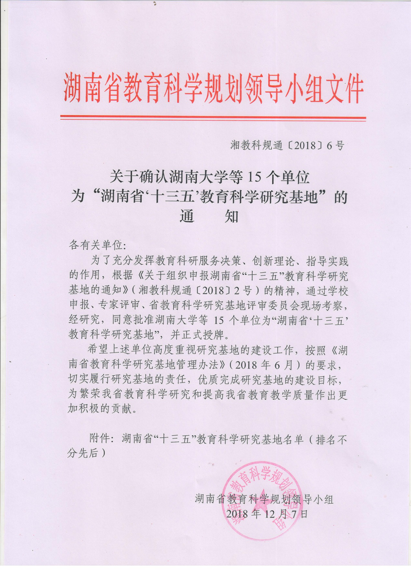 公司获批“湖南省‘十三五’教育科学研究基地”