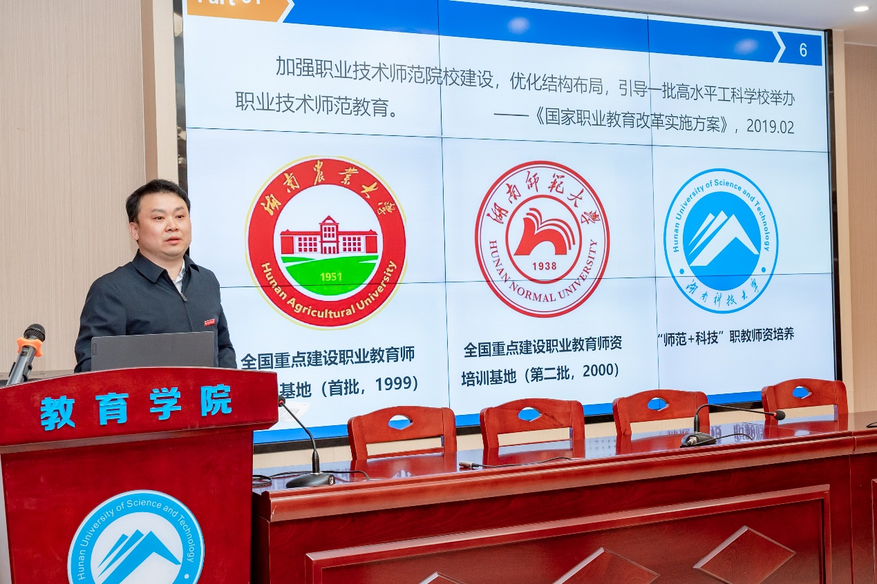 3月21日下午,公司在敏行楼A333学术报告厅召开“师范+科技”职教团队培养圆桌会议。全国教育专业学位研究生教育指导委员会(以下简称“全国教指委”)秘书处翟东升教授,天津职业技术师范大学原党委书记、全国教指委委员孟庆国教授,河北金融公司原党委书记、全国教指委委员汤生玲教授,同济大学张建荣教授,华南师范大学刘志文教授,浙江工业大学邱飞岳教授,河北师范大学刁哲军教授,湖南师范大学李仲阳教授,重庆师范大学郝明君教授,天津职业技术师范大学李梦卿教授,天津大学潘海生教授,宿迁公司杨树臣教授,天津职业技术师范大学曹晔教授,湖北工业大学马丹教授以及湖南省教育科学研究院、衡阳师范公司、长沙汽车工业公司、长沙涉外旅游职业中专等单位负责人与会,公司研究生院(部)、发展规划与团队建设处、教学评建与教师教学发展中心、球盟会(教育科学研究院)、化学化工公司、机电工程公司、材料科学与工程公司、商公司等单位代表参加。公司党委委员、纪委书记郭时印出席。会议由公司教学评建与教师教学发展中心主任周险峰主持。