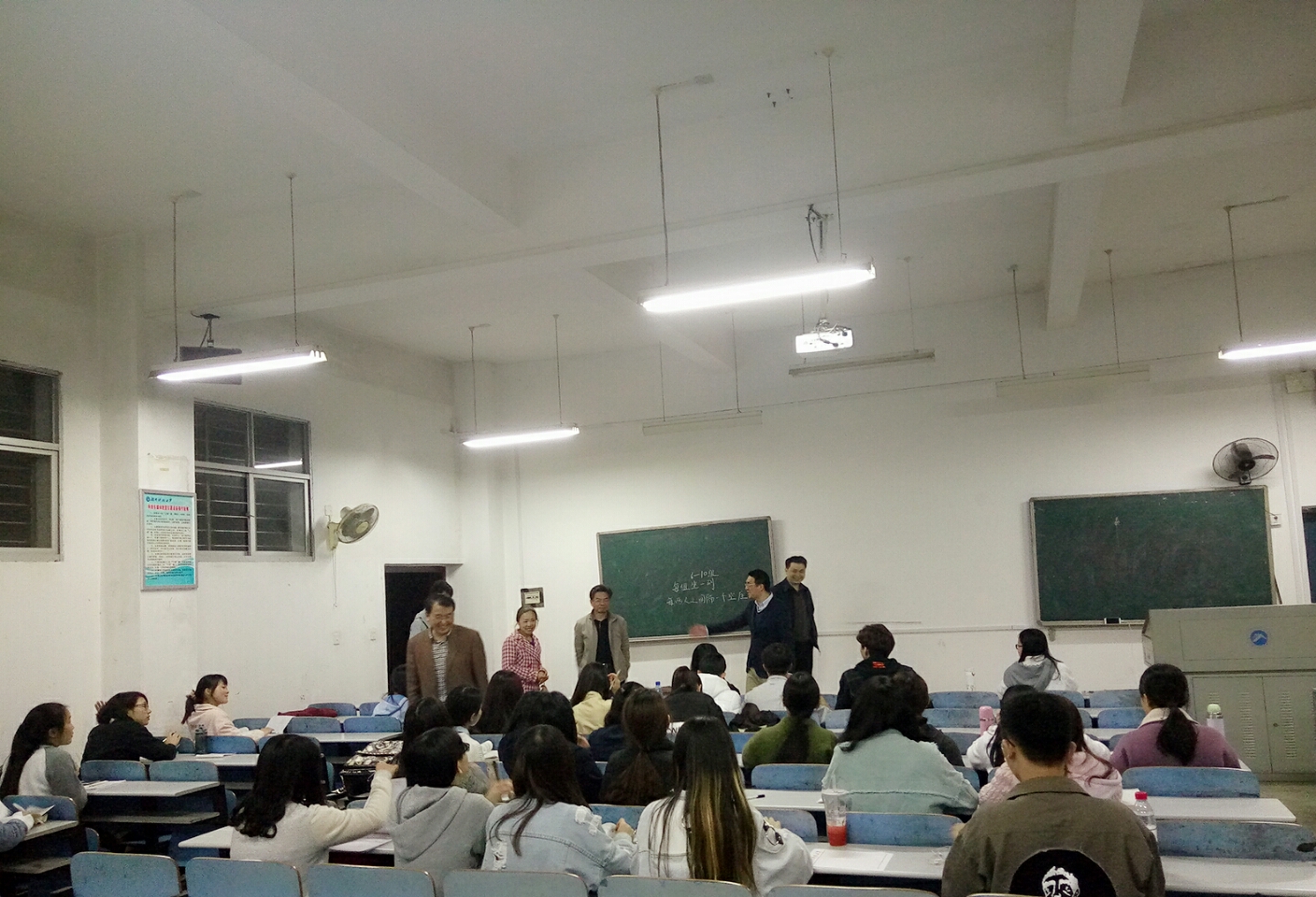 接下来,院领导老师们一行来到了第八教学楼,看望在教室自习的同学们。教室里很安静,充满着浓郁的学习气氛,同学们并没有因为领导和老师的到来打乱自己的学习节奏。领导老师们很是触动,所以在和同学们简单地问好和鼓励之后,便离开了教室。