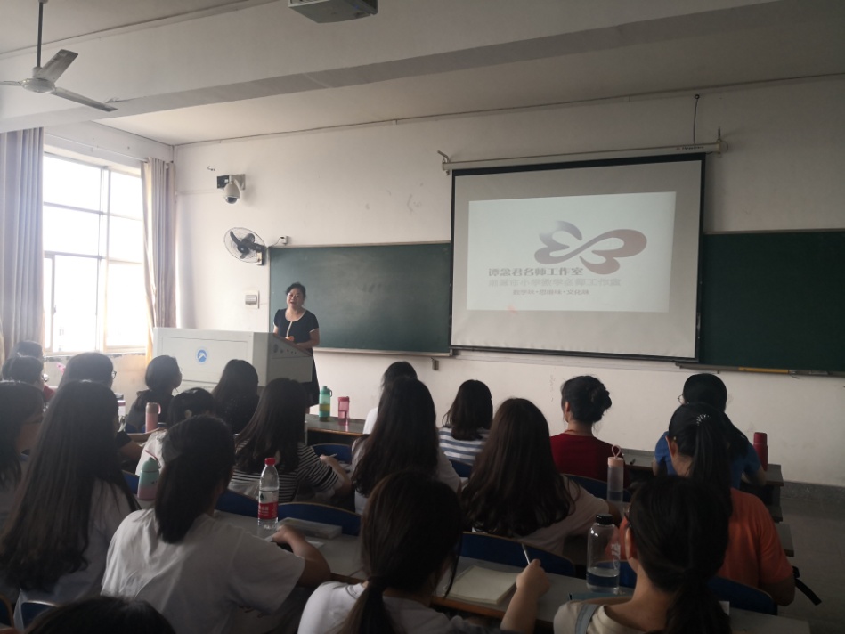 2019年9月16日下午,湘潭市雨湖区教育研究培训中心小学数学教研员、湖南省小学数学示范性工作坊坊主、湘潭市小学数学名师工作室主持人谭念君老师应邀参加“躬行讲堂”,主讲17级小学教育专业课程:《小学数学课程与教学论》,讲堂由公司党委书记李炳煌教授主持。