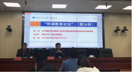 2018年3月28日下午,聊城大学教授,教务处处长赵长林教授做客“明湖教育论坛”,在八教308教室开展题为“从中国员工发展核心素养到基础教育课程改革的实践逻辑”讲座,2017级教育学硕士研究生、教育硕士专业研究生和部分本科生和教师代表参加了本次讲座。讲座由球盟会经理李海萍主持。