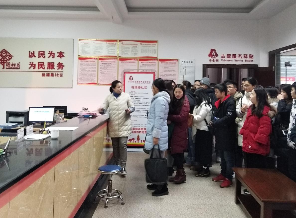 2018年12月27日上午,李炳煌、尹霞云、黄甜老师带领2015级心理学系40多位同学赴桃源路社区开展社区心理实践活动。万楼街道办事处杨文超书记、桃源路社区贺承谦主任和社区工作人员热情接待并为我们介绍了桃源路社区的基本情况。贺主任以“社区心理学经验交流”为题,就社区工作、居民常见的心理问题及表现、社区心理服务开展情况以及遇到的主要困难等方面展开交流,同学们积极提问,受益匪浅。李炳煌强调,今后要多开展这样的实践活动,让老员工走进社会了解社会,增长见识,理论联系实际,学以致用。