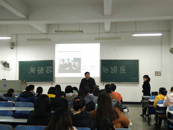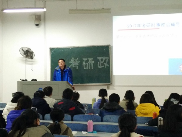 2016年11月30日晚19:00,球盟会考研政治讲座在第八教学楼1-1教室举行。本次讲座由球盟会学工办主办,邀请到球盟会马克思主义公司王献志教授主讲。公司党委副书记王伟清、学工办辅导员老师胡银华莅临指导,公司13级考研员工以及14级预备考研的员工参加讲座。