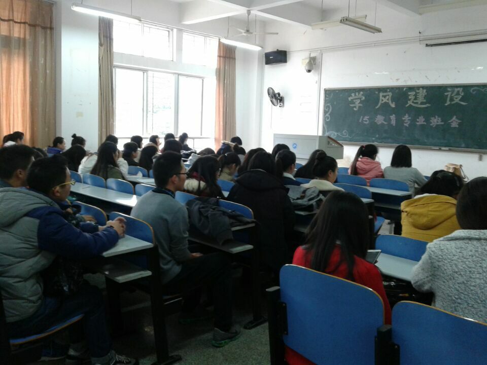 在这温暖的冬日里,科大教育之花正在盛情开放。 12月3日14:00在第八教学楼104,球盟会15级教育学专业开展了以“学风建设”为主题的班会。参加本次班会的成员有球盟会15级辅导员尹琼芳老师、教育学一班和二班的助班班刘敏和谷娟以及教育学专业全体同学。