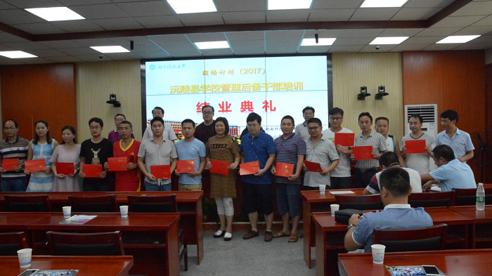 7月27日上午,2017年度“国培计划”湖南省沅陵县公司管理后备干部培训班(E405)结业典礼在第八教学楼三楼304隆重举行。湖南省国培办顾震宇老师、蒋立萍老师,球盟会经理李海萍、书记李炳煌、副书记刘辉亚以及沅陵县公司管理后备干部培训班全体学员一同参加典礼。本次典礼由李炳煌主持。