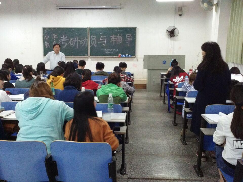 首先,王伟清书记作了重要讲话。他结合在场同学们的考研意向深入分析了当下的考研形势,就为什么考研、考什么方向的研以及如何考研等问题都做了详细的讲解。王书记认为:考研一方面是为了更好地就业,同时也是为了改变出身,为自己今后更好的发展打下基础。他针对小教专业女生多的特质语言幽默地指出若只是本科毕业后可选择应聘职位范围的局限性以及职业地域分配可能会影响今后的婚姻大事等诸多现实问题。并且结合当今的就业形势,对公务员和老师这两种较为热门的职业进行针对性的比较,使同学们对今后职业的选择有了更为理性的思考。